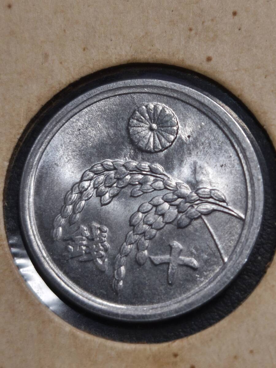 当時の物資不足を反映した、軽量なアルミ貨幣です。