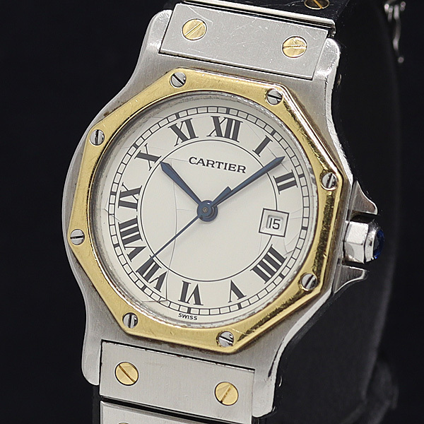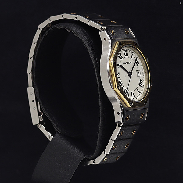 1円 稼働 カルティエ AT/自動巻 サントスオクタゴン YG×SS 白文字盤 デイト メンズ腕時計 0036410 11JWT IKE