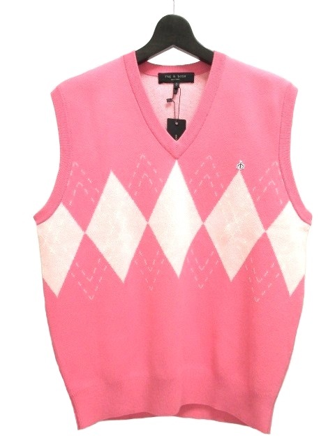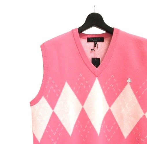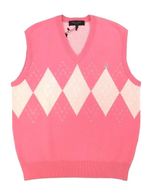 【冬SALE】新品★rag&bone ピンク アーガイル柄ニットベスト Sサイズ★定価30800円 Vネック ラグ&ボーン メンズ