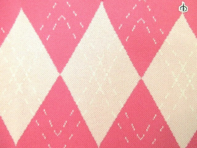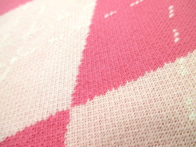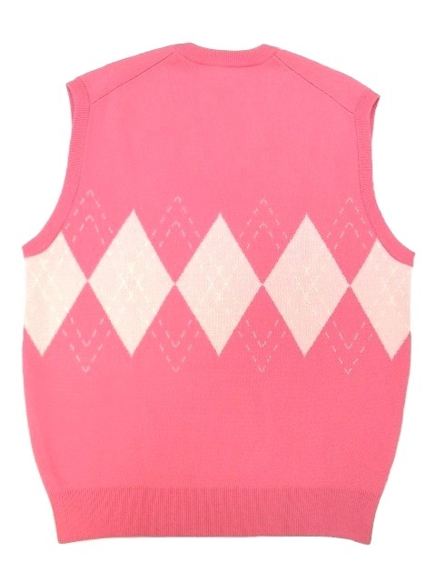 可愛らしくなったりカジュアル感が強くなりがちな「ピンク」に、英国トラッドの代表的な柄である「アーガイル柄」を組み合わせることで、上手く上品な大人感も加えたピンクニットベストです。