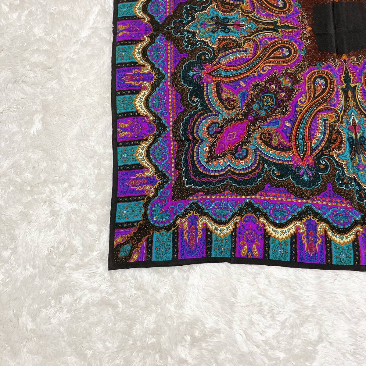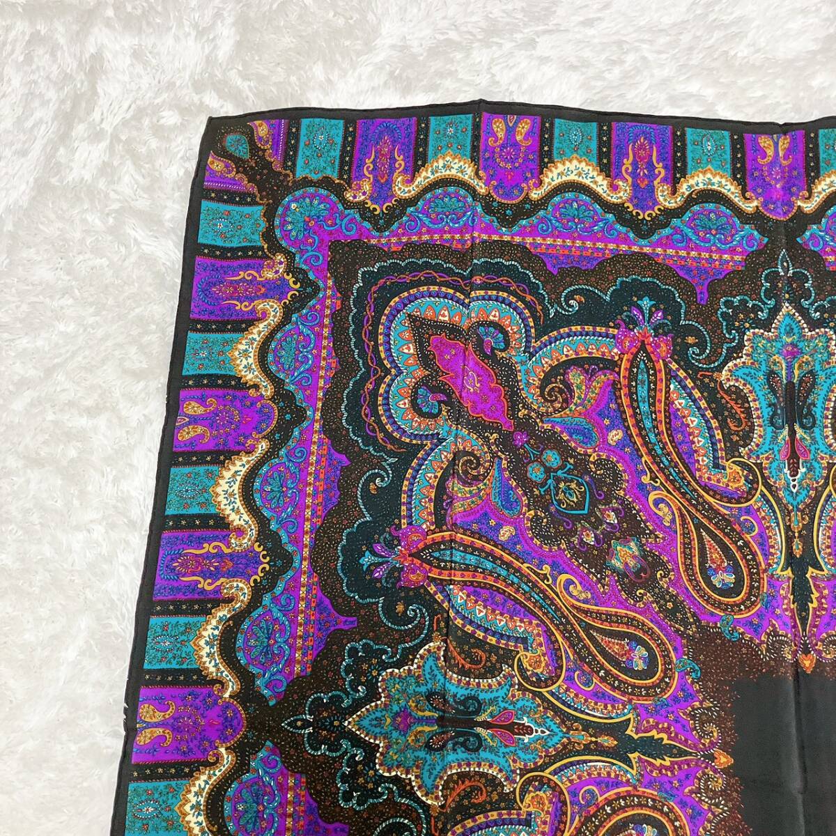 YVES SAINT LAURENT イブサンローラン スカーフ ヴィンテージ 大判 ペイズリー柄 シルク調 レディース ブラック パープル ブルー