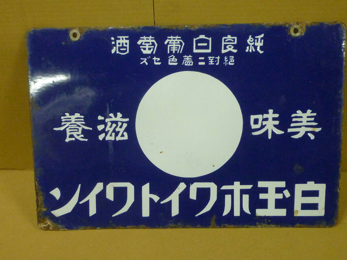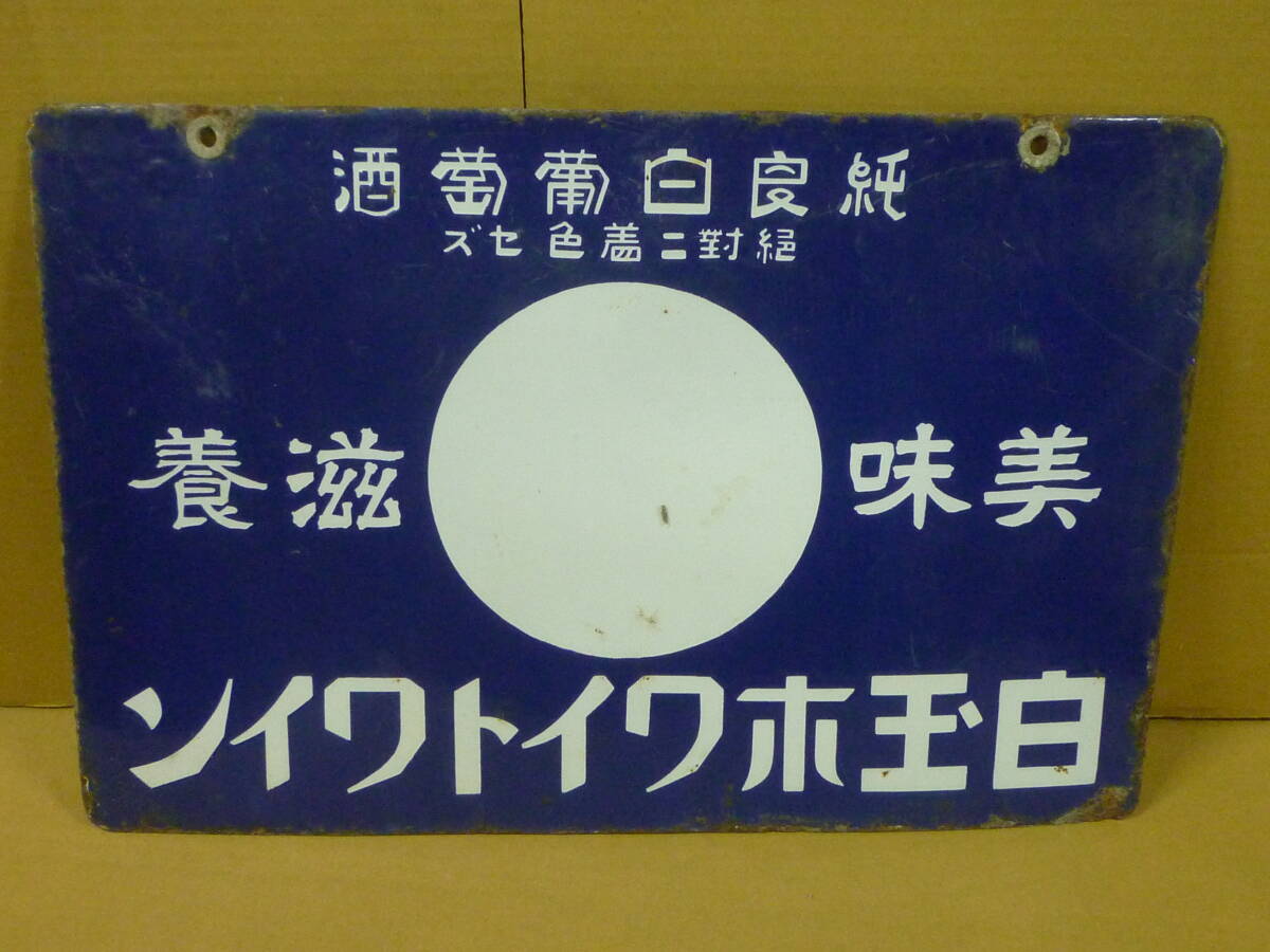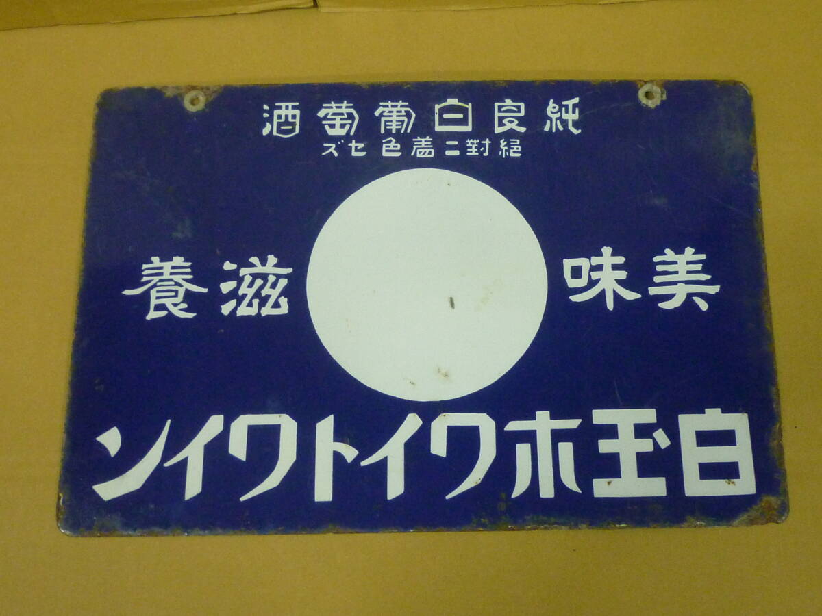 本物看板 ホーロー看板 ワイン ガラス質 ペロペロ レトロ 白玉ホワイトワイン