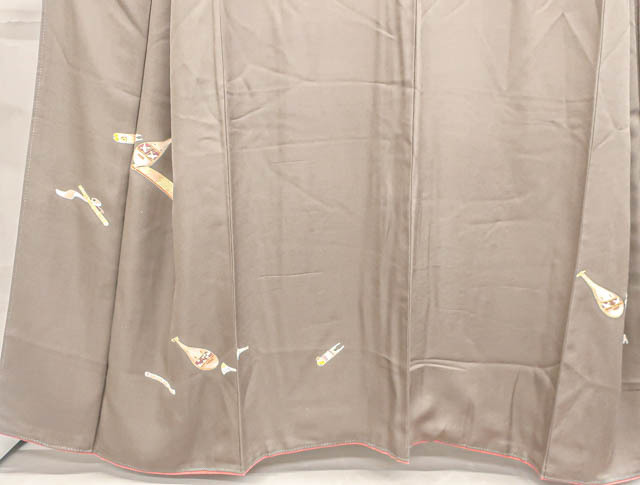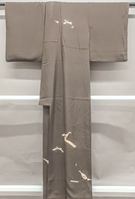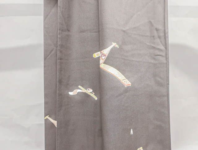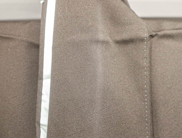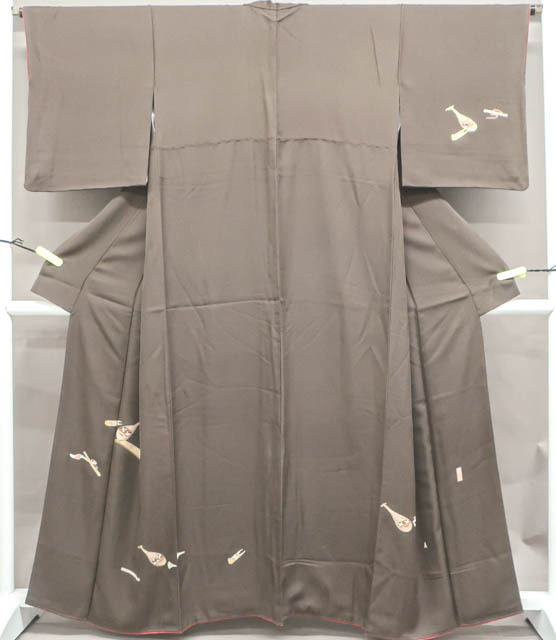 リサイクル商品のため、衿や袖口に汚れがございますが着用可能なお品です。 地色は、こげ茶色です。 1枚目の画像が近いお色かと思われます。 素材は正絹です。 |