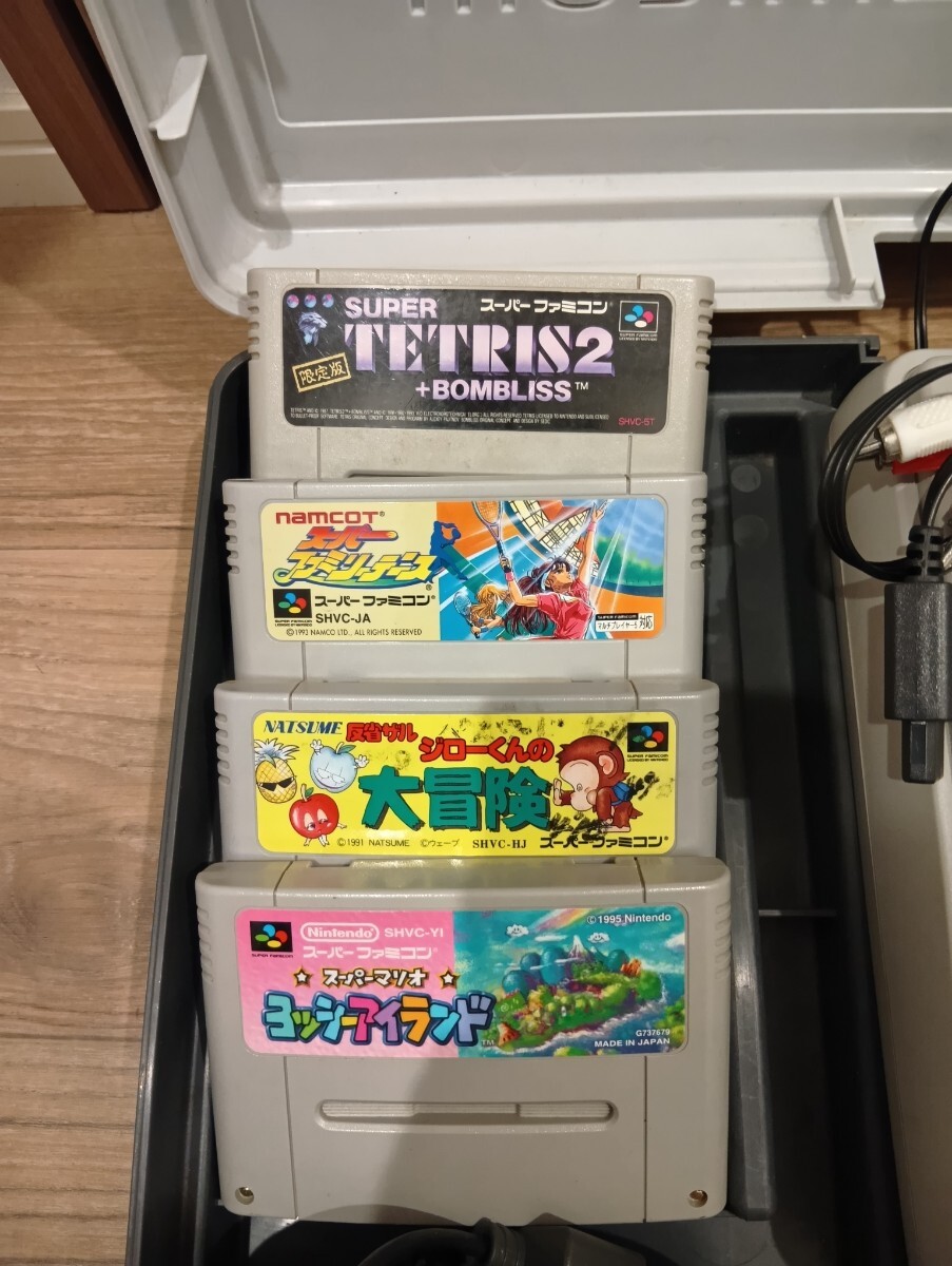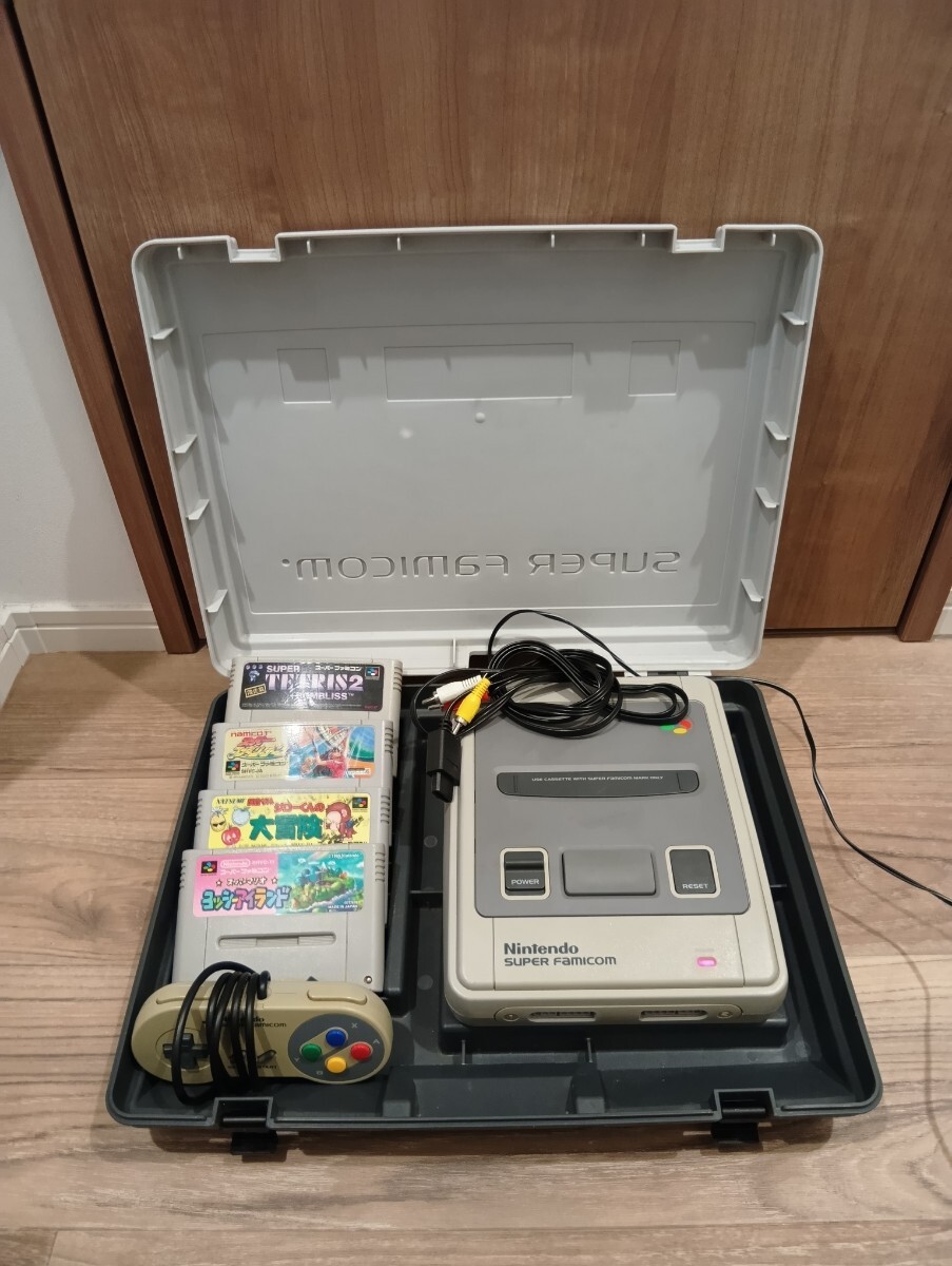 ケース、本体、コントローラー1台、ACアダプター、接続端子、ゲームソフト4点がワンセットになります。