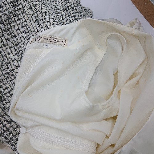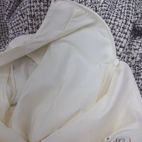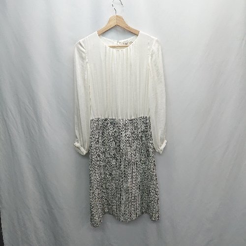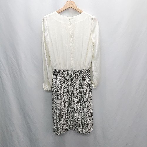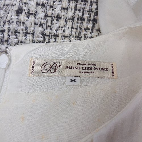 ◇ Θ B:MING LIFE STORE by BEAMS ツイード切替 長袖 膝下丈 ワンピース サイズM オフホワイト ブラック系 レディース E