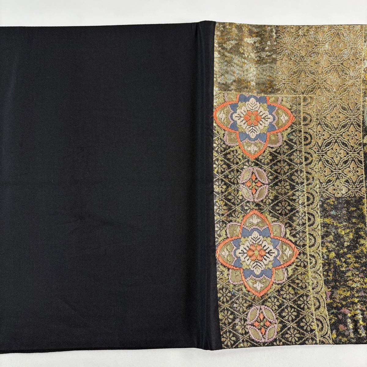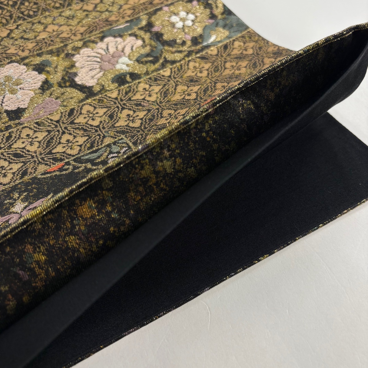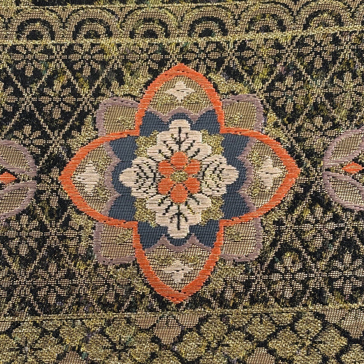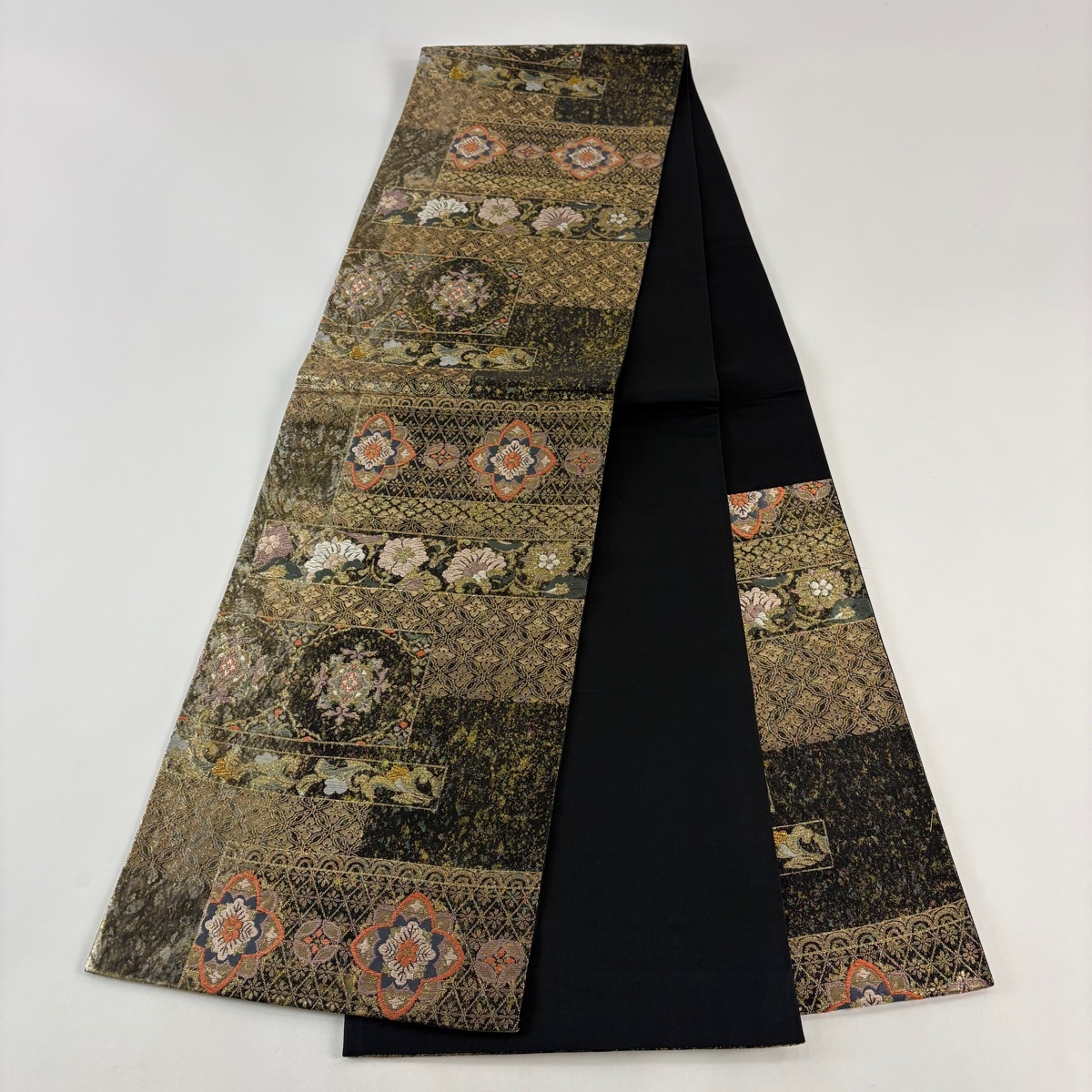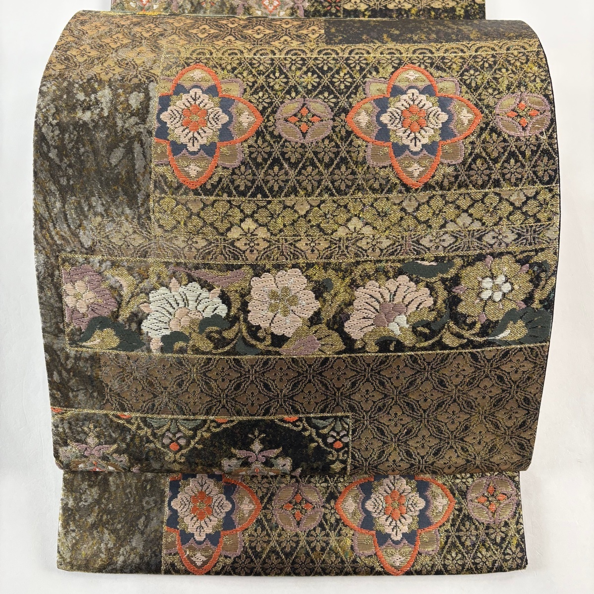 | 袋帯 美品 秀品 草花 七宝 金糸 箔 焦茶色 六通 正絹 【中古】 |
