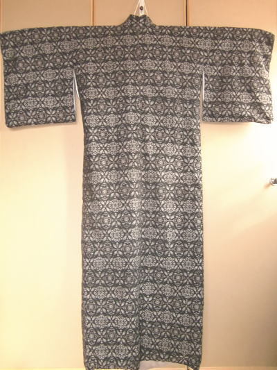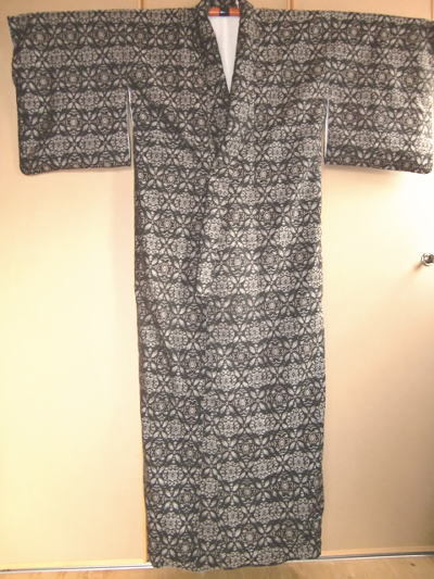 掘り出しました!2000円菱型文正絹袷小紋 お稽古着 中古品