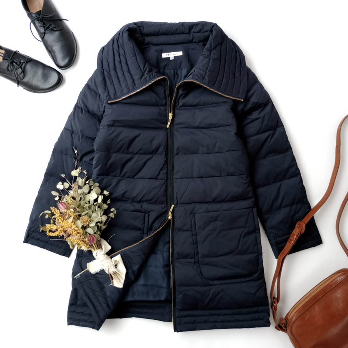 49AV. junko shimada フォーティーナインアベ ジュンコ シマダ「寝袋級のぬくもり。」衿付き ミドル ダウン コート 38 ネイビー(EM+0346)