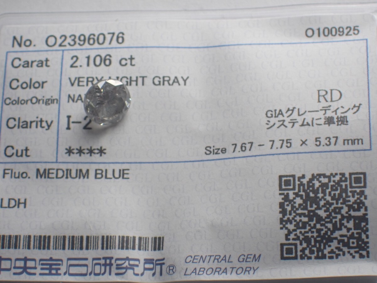 1円~!D2.106ct 天然ダイヤモンドルース 裸石 NATURAL DIAMOND sorting 中央宝石研究所ソーティング付き
