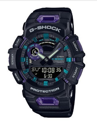 アーバンスポーツをコンセプトに日常のトレーニングを快適にサポートするG-SHOCKのスポーツラインです。スマートフォンのGPS 機能と連携し距離計測を補正。この距離計測と走行時間計測を連動させ走行ペースの計測に対応するほか、オートラップ機能も搭載。ステップトラッカーやインターバルタイマー、ラップタイム計測、消費カロリー計測と併せて、毎日のトレーニングをサポートします。また、専用アプリと連携しライフログやアクティビティ履歴などを確認でき、ディスプレイにはドーナツ型液晶を採用。5段階の運動強度グラフと設定した目標達成率を表示し、モチベーションアップに役立ちます。スーパーイルミネーターも搭載し、暗所での視認性にも配慮。バンドにはソフトウレタン素材を使用しフィット感を高めるとともに、接続部分にベントホールを設け通気性の向上を図りました。また、Bluetooth 接続による自動時刻修正や簡易通知機能(報音のみ)、歩数計測機能など、多機能を日常的に使用した際でも、約2年の電池寿命を実現。日常の健康管理からランニングの持久力強化まで、またファッションアイテムとしても幅広く役立つモデルです。