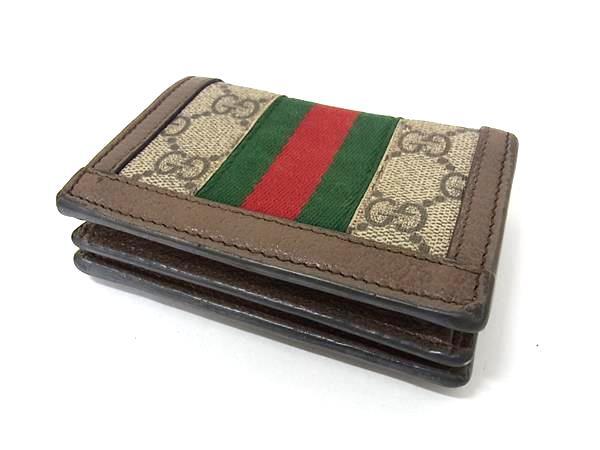 1円 GUCCI グッチ 523155 0416 シェリーライン GG柄 PVC×レザー 二つ折り 財布 ウォレット 小銭入れ 札入れ ブラウン系 FV4362