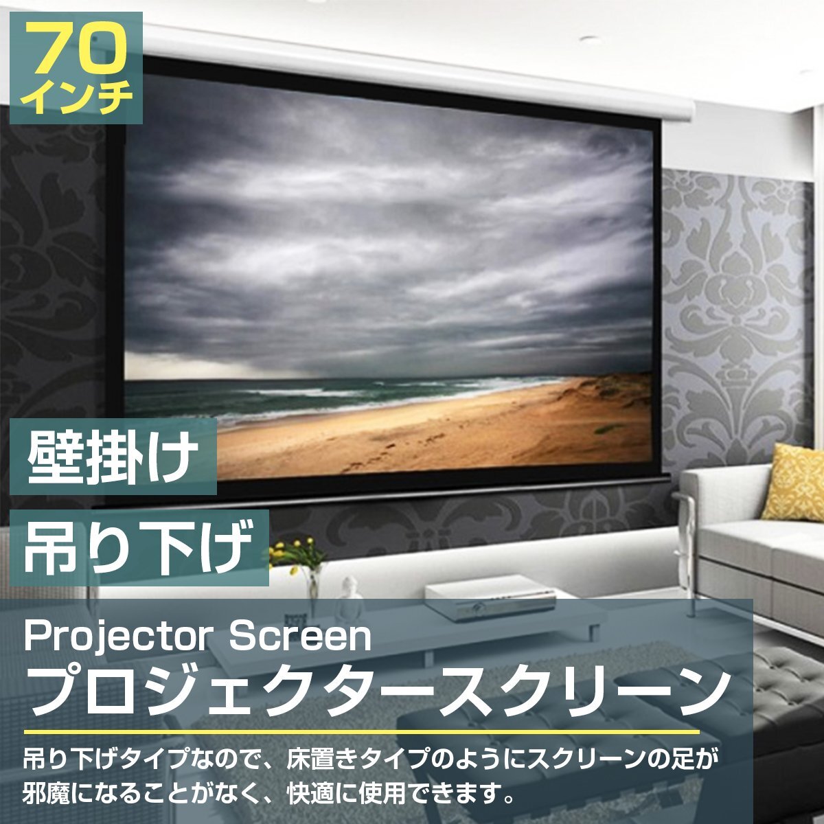 電動 自動巻き 高画質 70インチ 70型 1:1 プロジェクター スクリーン 壁掛け 天吊り ホームシアター プレゼン 会議 セミナー