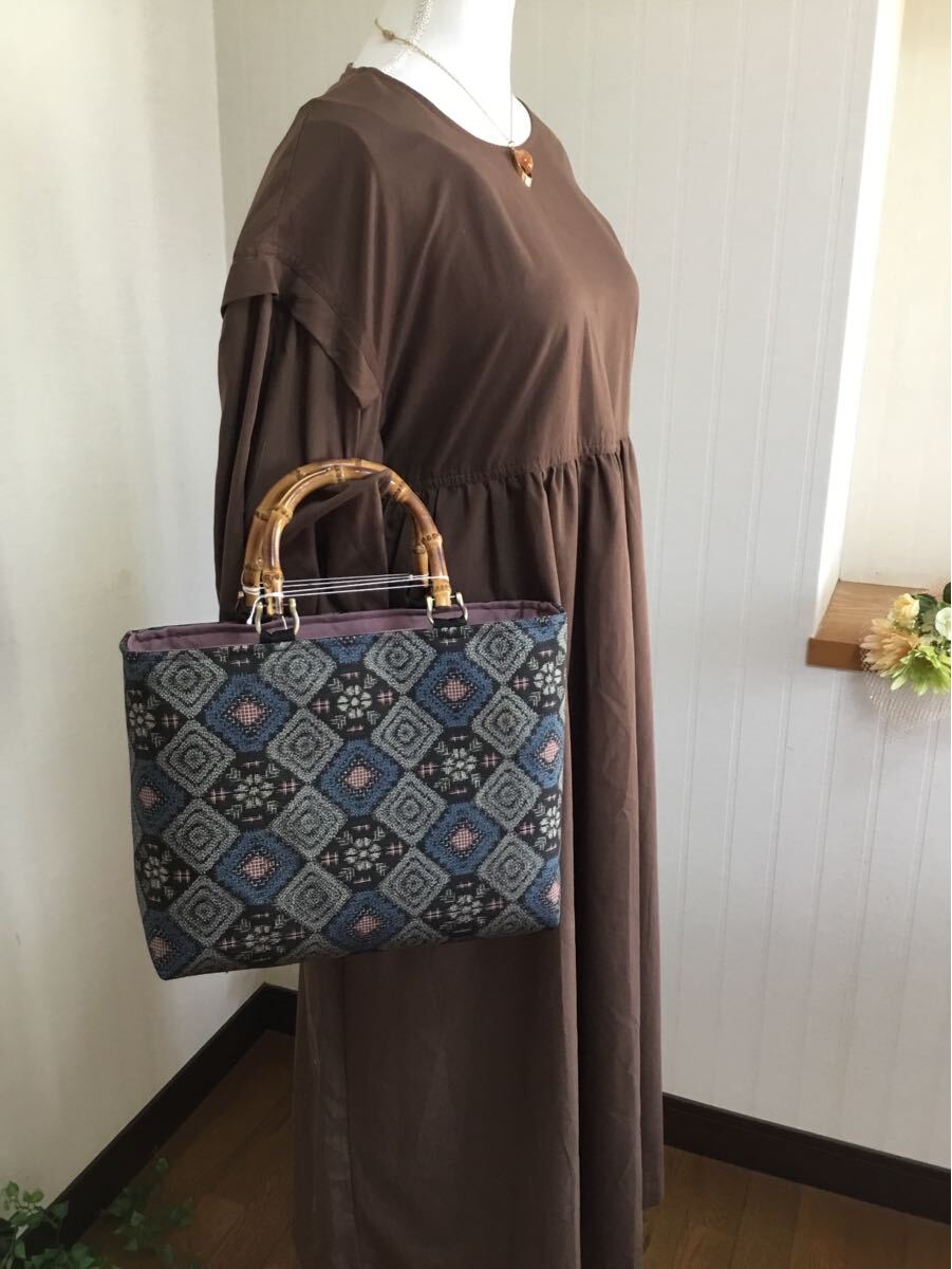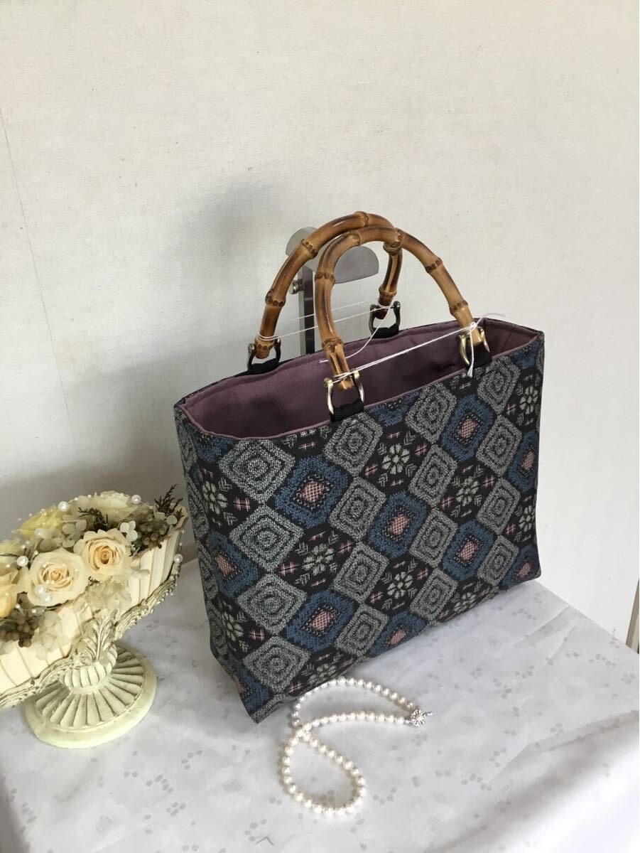 # リメイク #ハンドメイド #ハンドバッグ #トートバッグ #帯 #着物 #和装 #結婚式 #入学式 #卒業式 #七五三 #成人式 #袴 #浴衣 #お茶 #茶道 #お花 #花道 #お習字 #プレゼント #母の日 #着物でも洋服でも #大きめ #着物リメイクバック #大島紬バック #バンブーバック