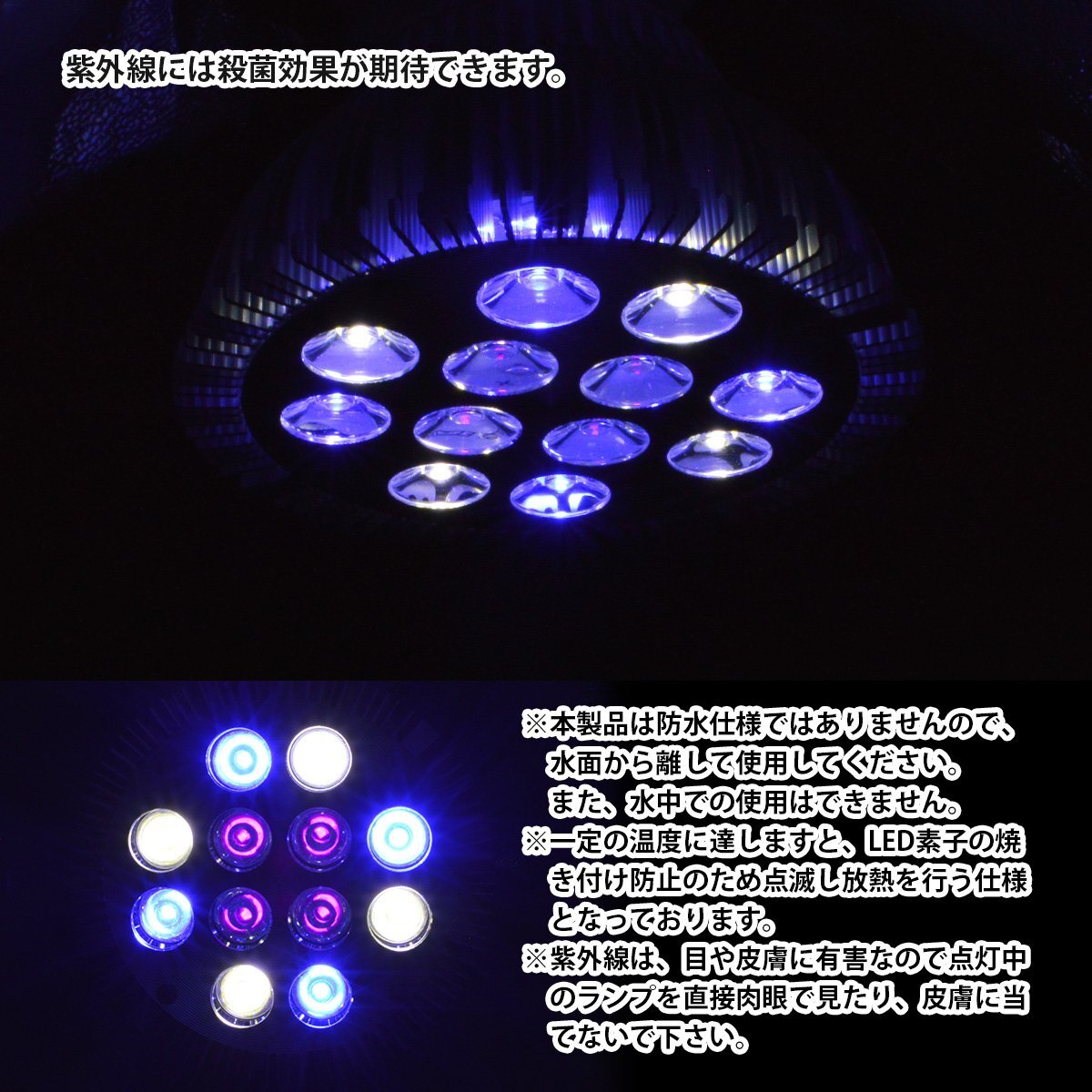 [青4/白4/紫外線4] 24W(2W×12) 電球 E26 口金 水槽 用 照明 植物育成 スポット ライト 12LED アクアリウム 電球 水草