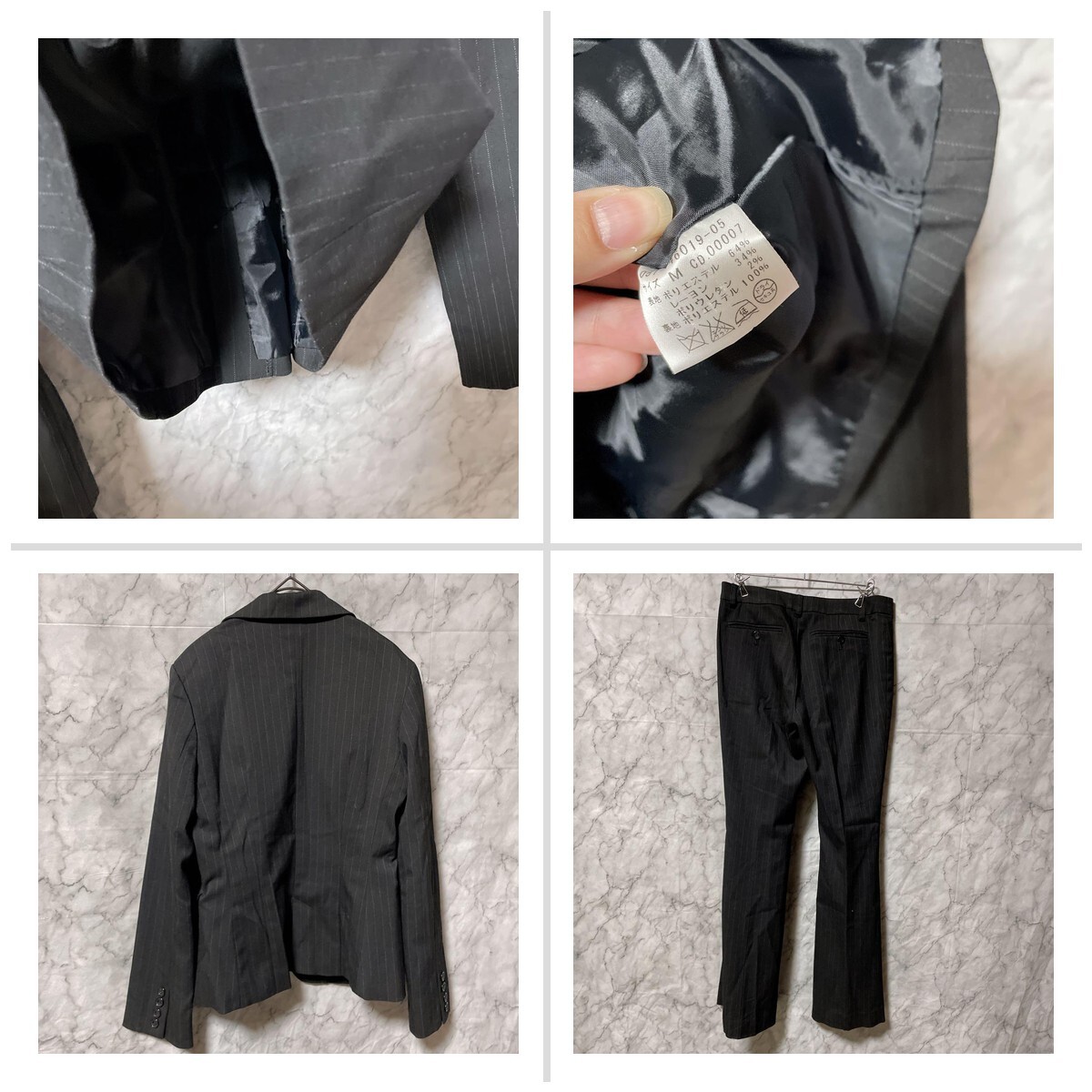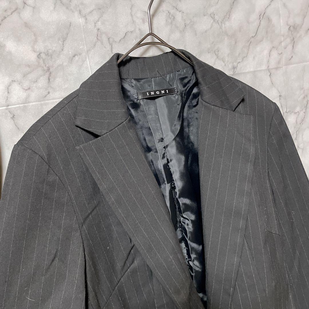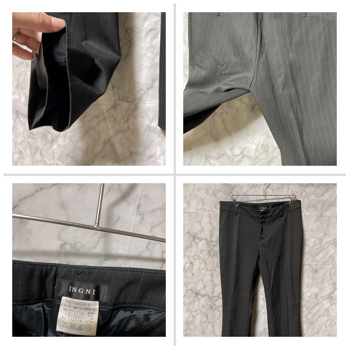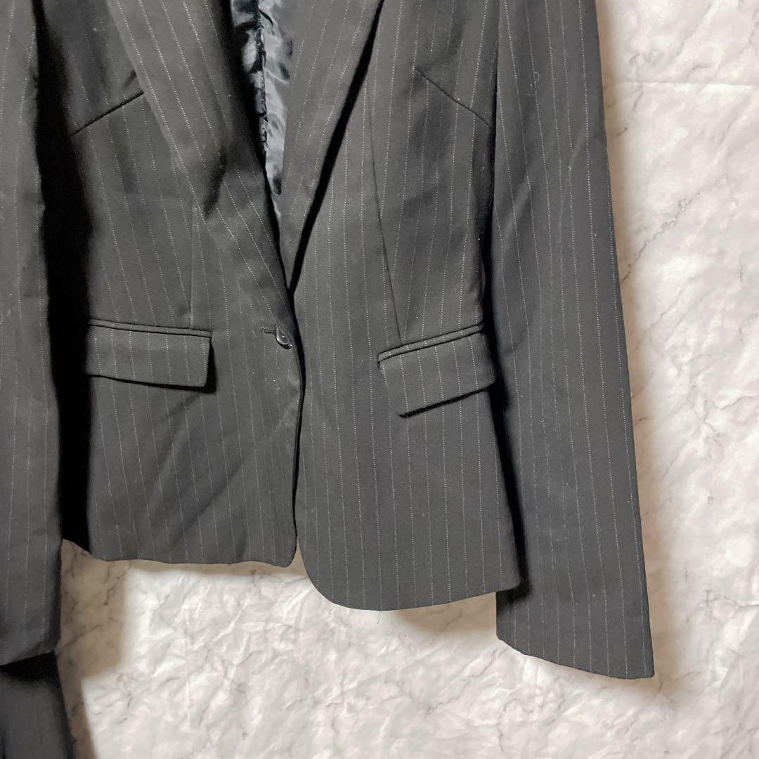 12426 INGNI ストライプ パンツ上下セットアップ 黒 M オフィス古着 AD7DB6