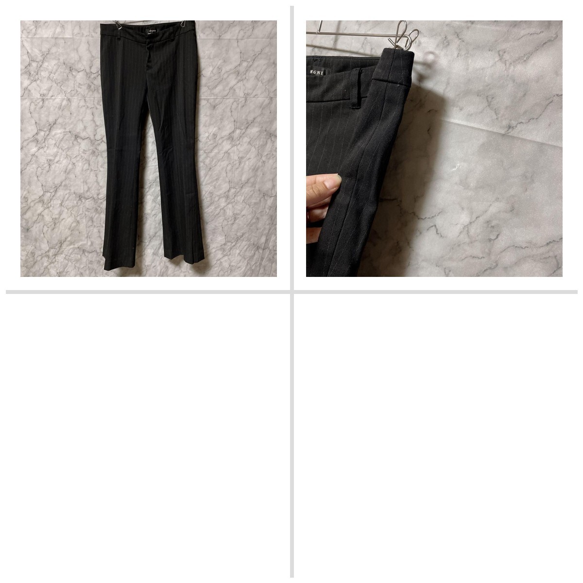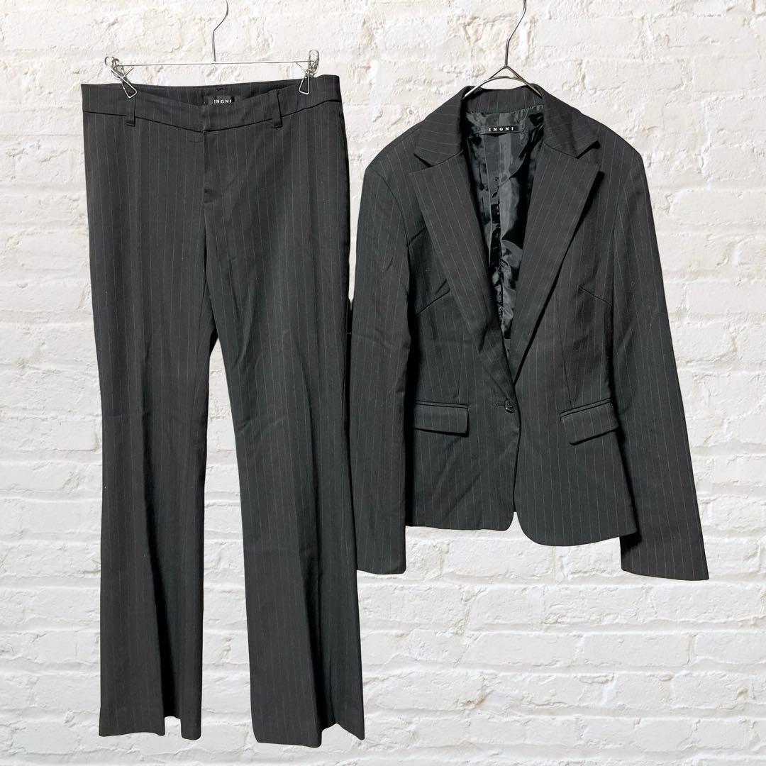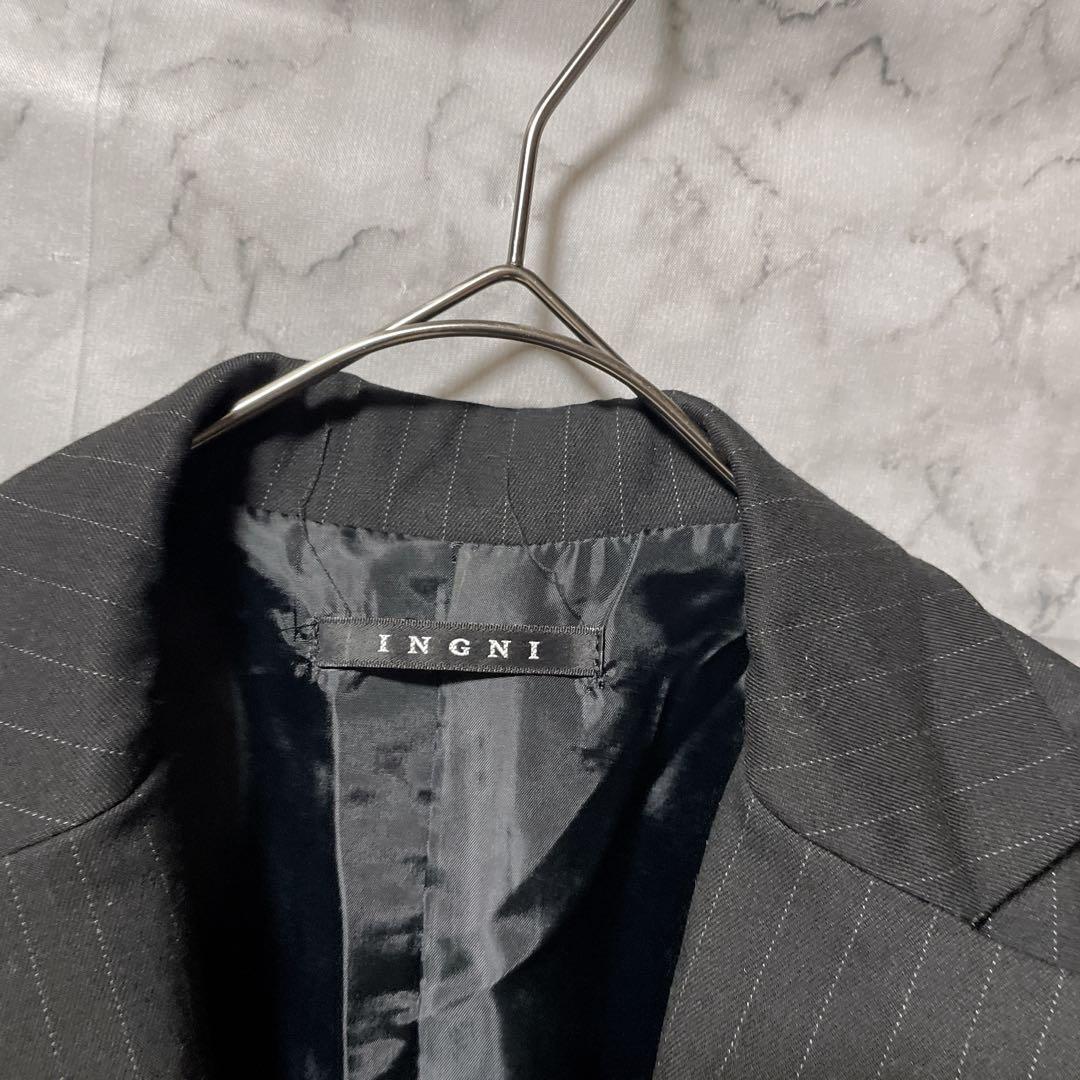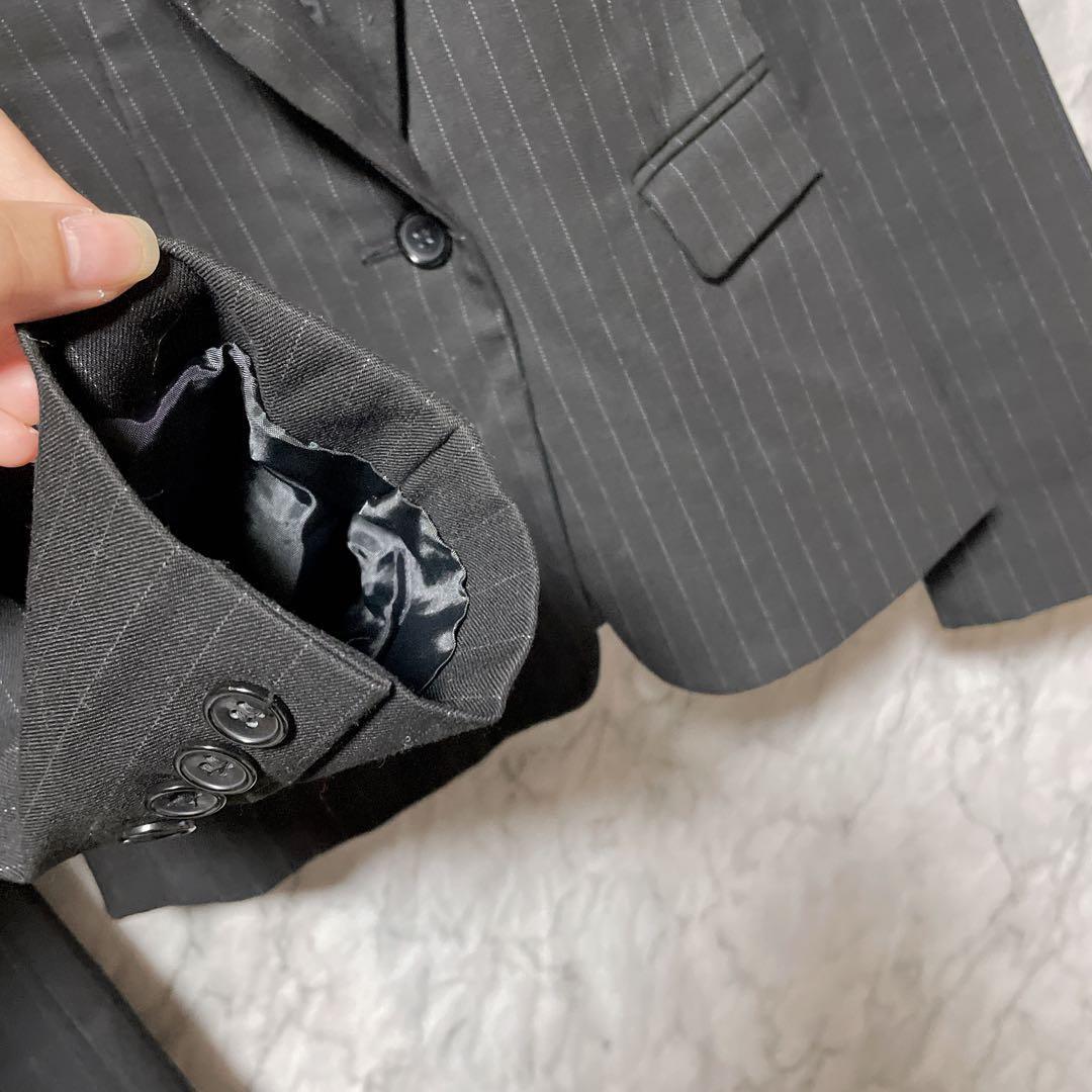 12426 INGNI ストライプ パンツ上下セットアップ 黒 M オフィス古着 AD7DB6