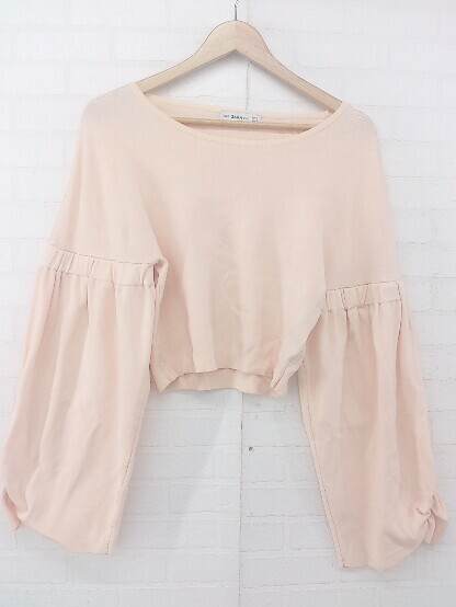 ◇ ZARA KNIT ワイドスリーブ シャーリング ショート丈 ニット セーター サイズEUR S USA S MEX 26 ピンク レディース E