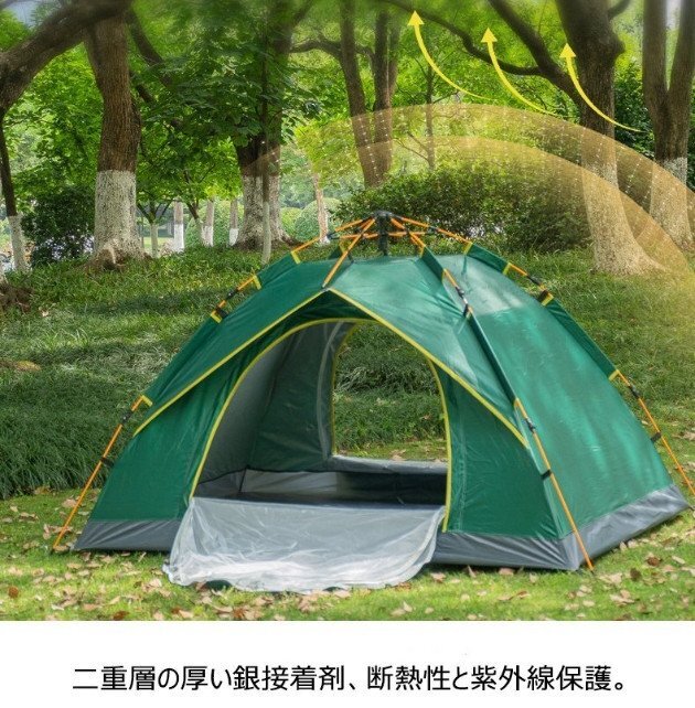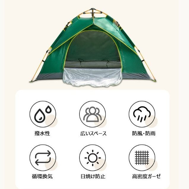 自動3秒開 テント 3-5人用 キャンプ ベルテント ゲル アウトドア 防風 防塵 防水 防虫 野営 アウトドア用品 通気性耐久性よい(a98)