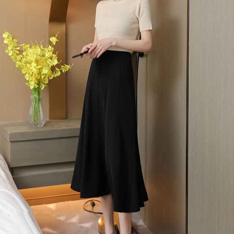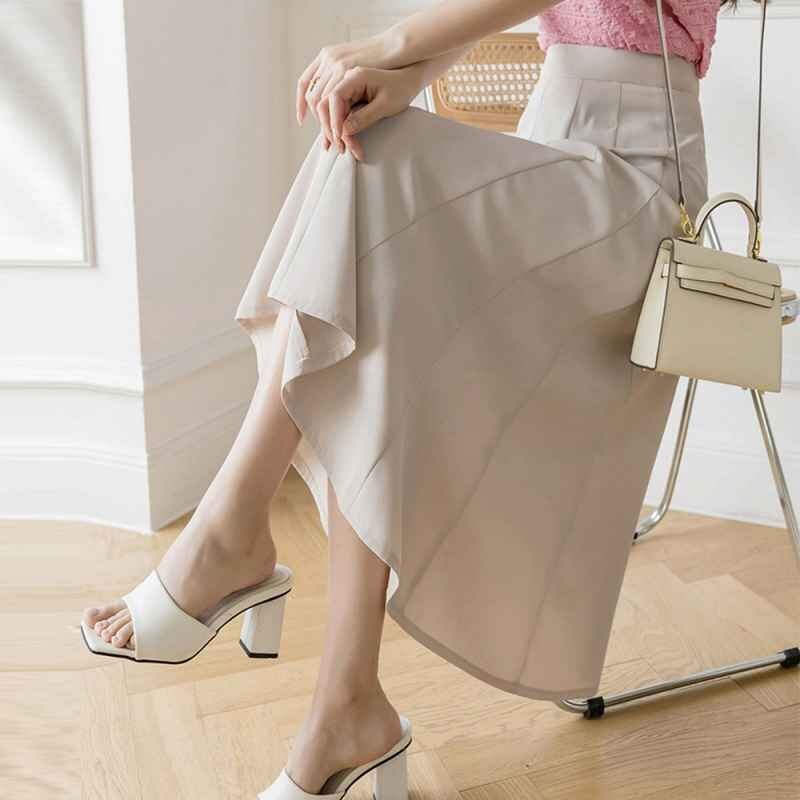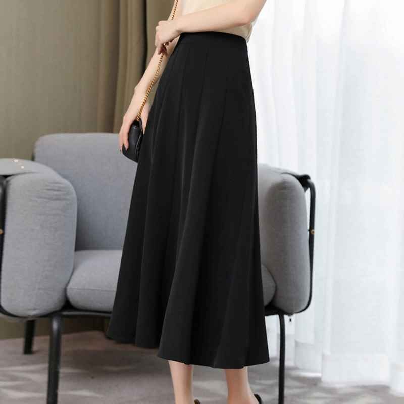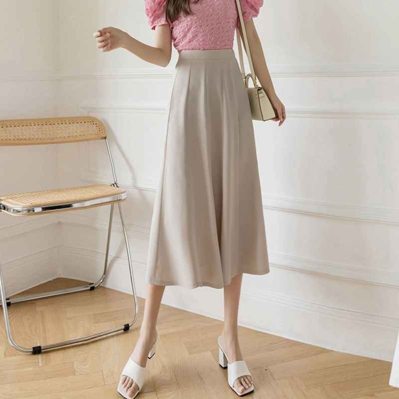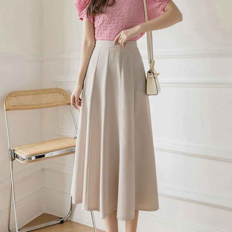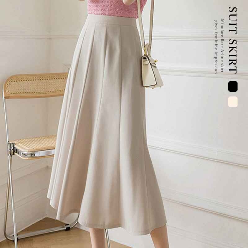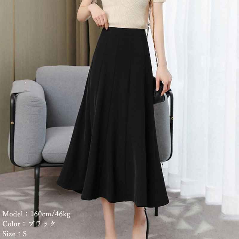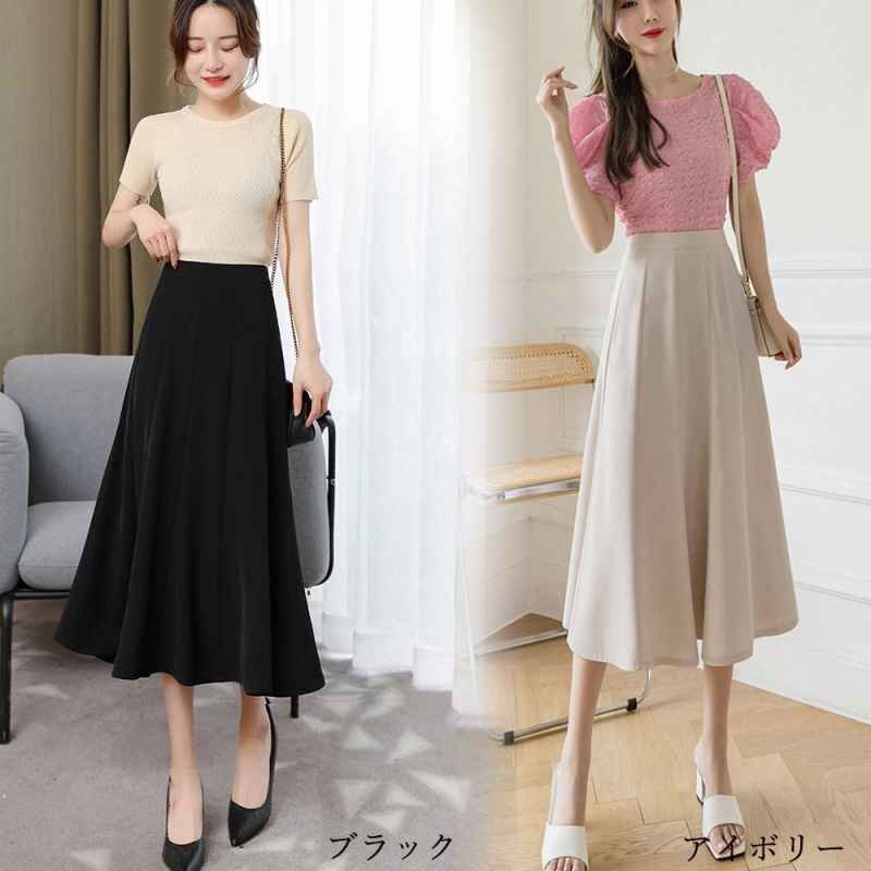 程よくフェミニンな印象を与えてくれるミモレ丈フレアAラインスカートハイウエスト