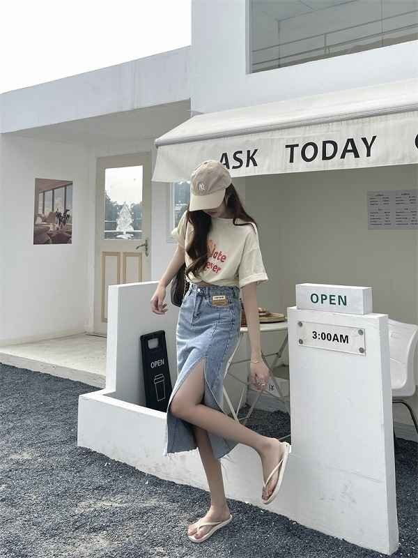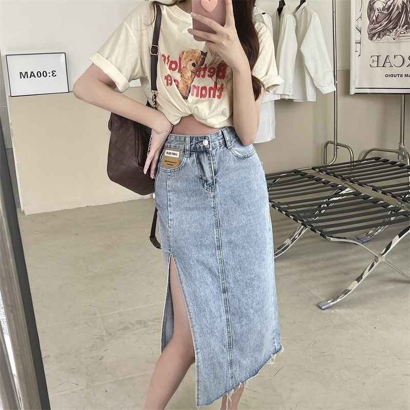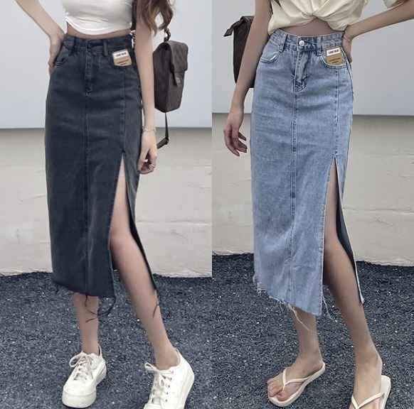 全2色 デニムスカート タイトスカート スリット ハイウエスト スリム 着痩せ デニム シンプル XL ブラックグレー