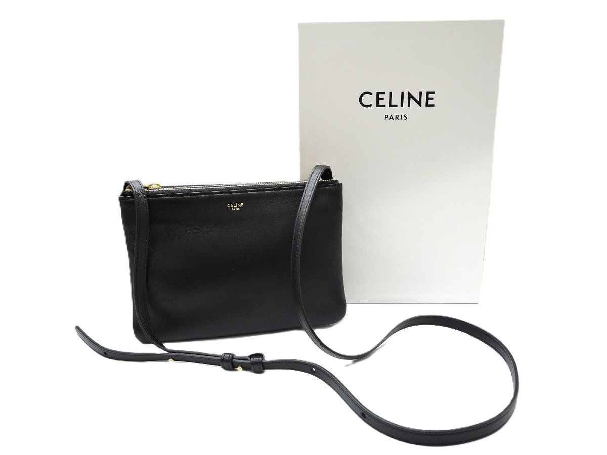 CELINE セリーヌ トリオスモール ショルダーバッグ 新ロゴ ブラック 中古 BOX付 ランクSA BRB・バッグ・財布
