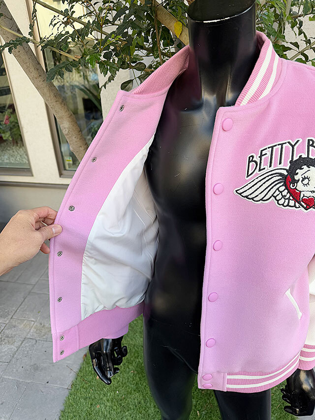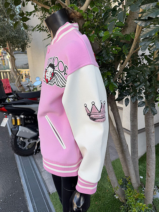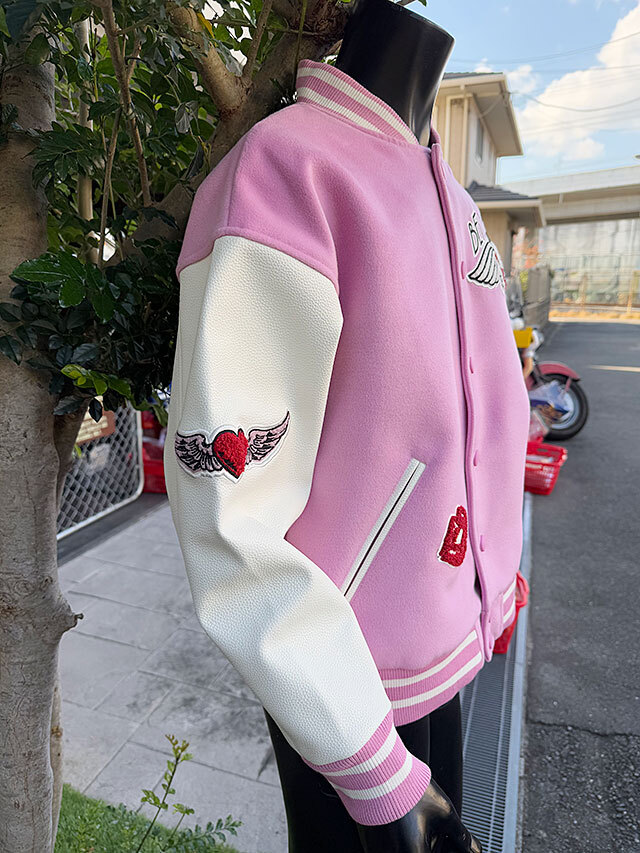 そで部分には合皮を使ってスタジャンのベーシックなスタイルをしっかりと再現してあります。