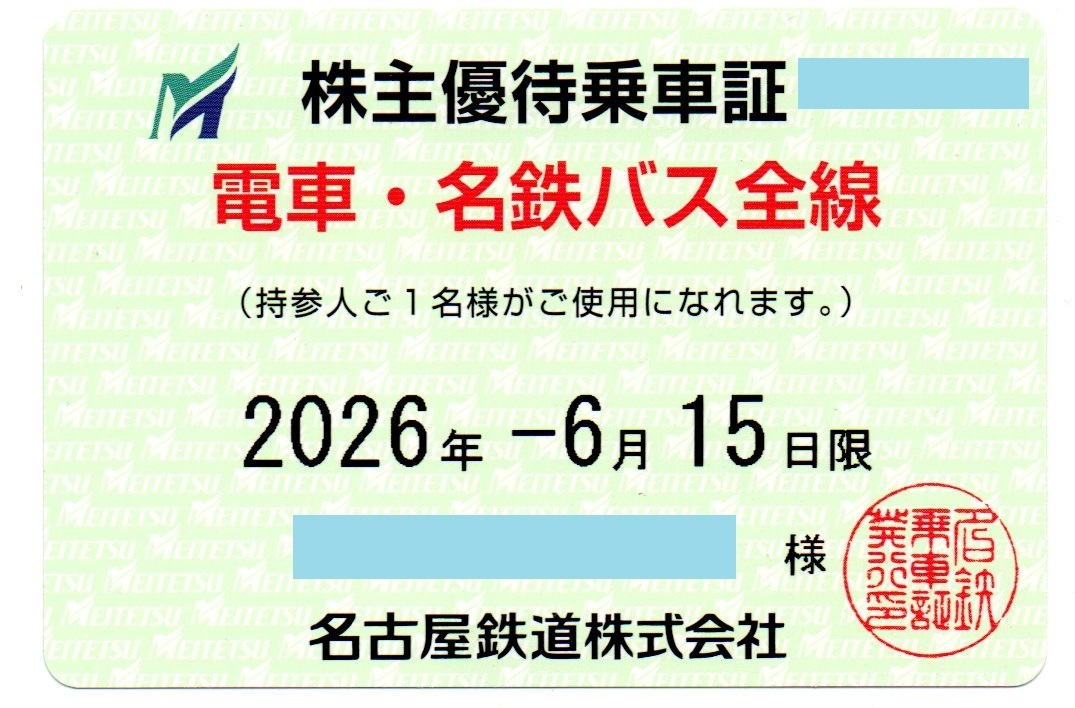名鉄★名古屋鉄道株主優待乗車証 電車・バス全線 2026.6.15迄有効