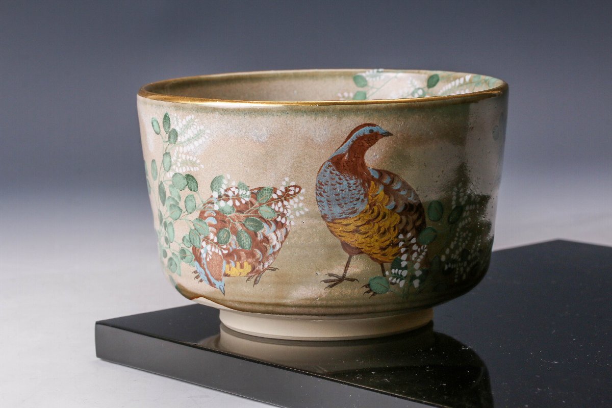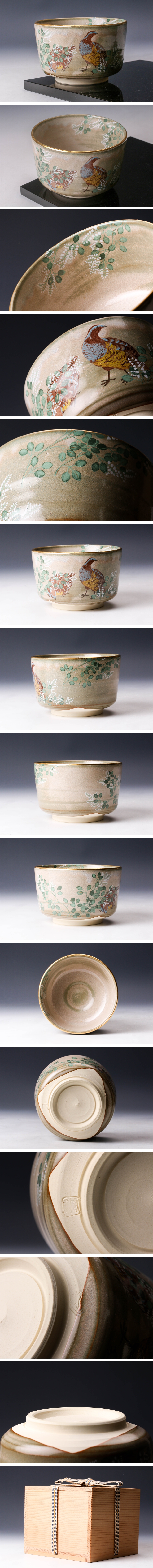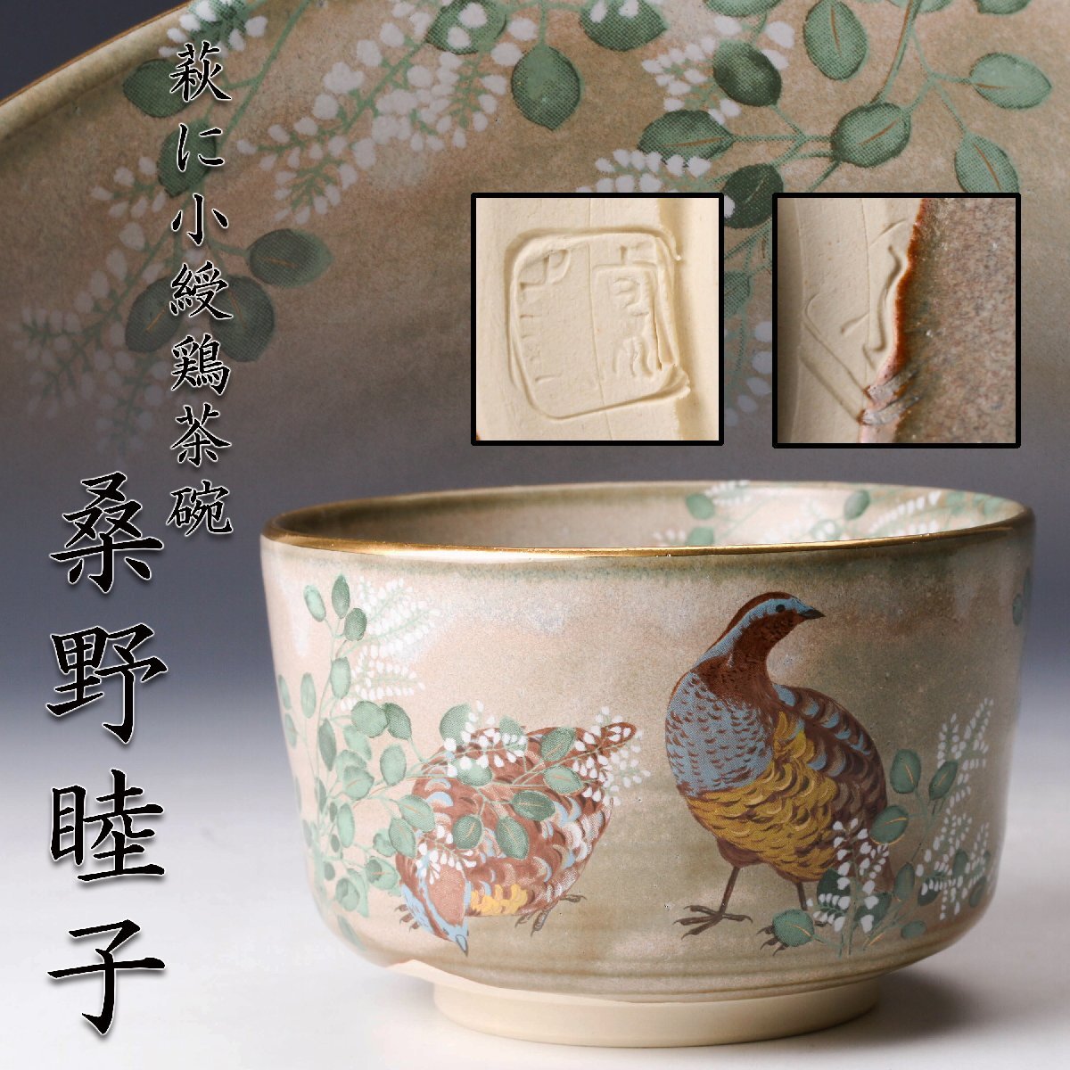 【佳香】桑野睦子 萩に小綬鶏(コジュケイ)茶碗 仕立箱 茶道具 本物保証