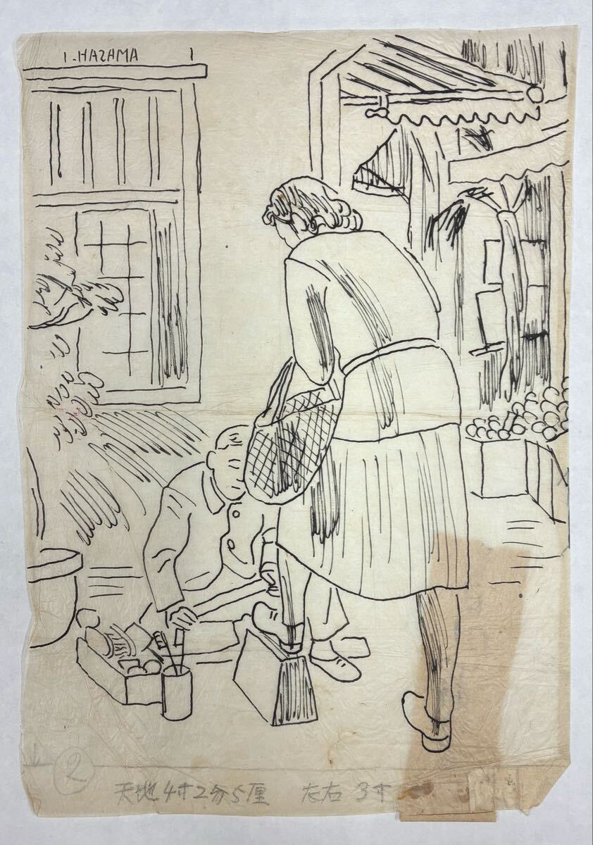 ●雑誌「苦楽」10月号 挿絵(大きい方のシート右上に「苦楽10月号」と書かれた札が貼り付けられています。)
