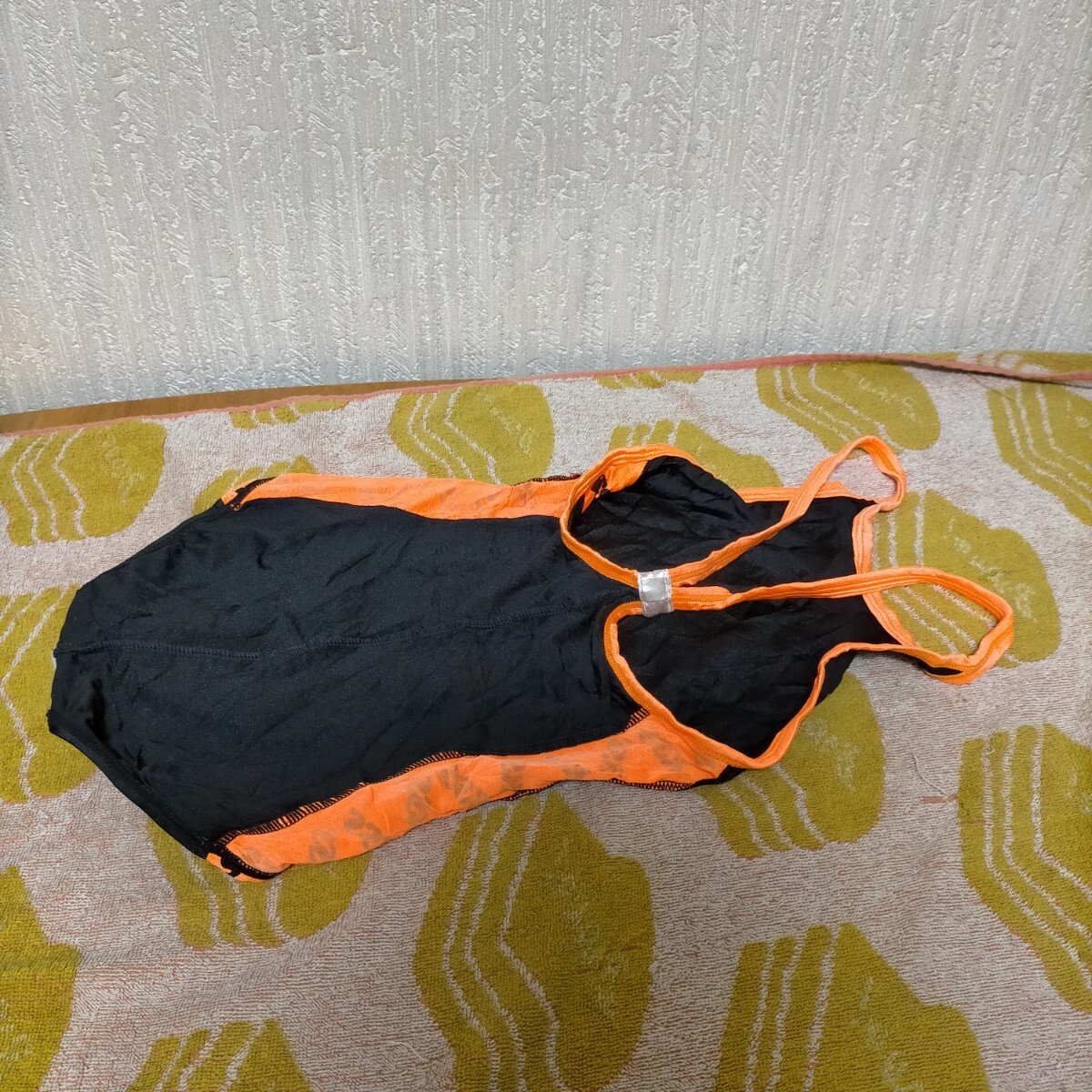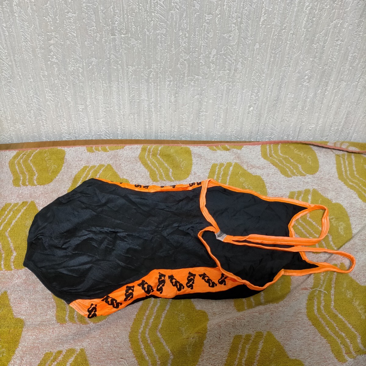 V-599 レディース 競泳水着 練習 水着 ワンピース ブラック オレンジ 系 KSSスイミング 140