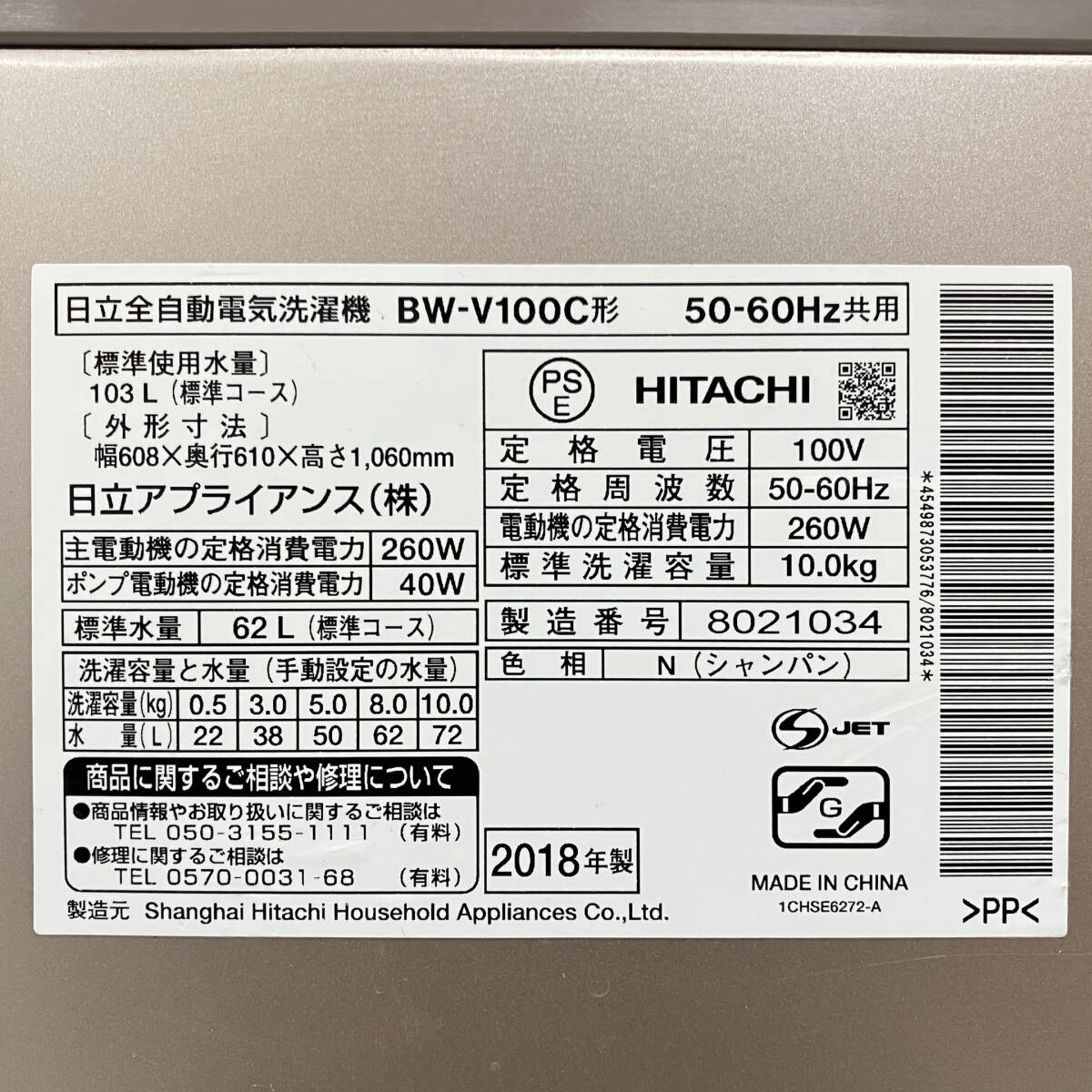 | HITACHI BW-V100C ビートウォッシュ 全自動洗濯機 縦型 2018年製 中古 楽H10629775 |