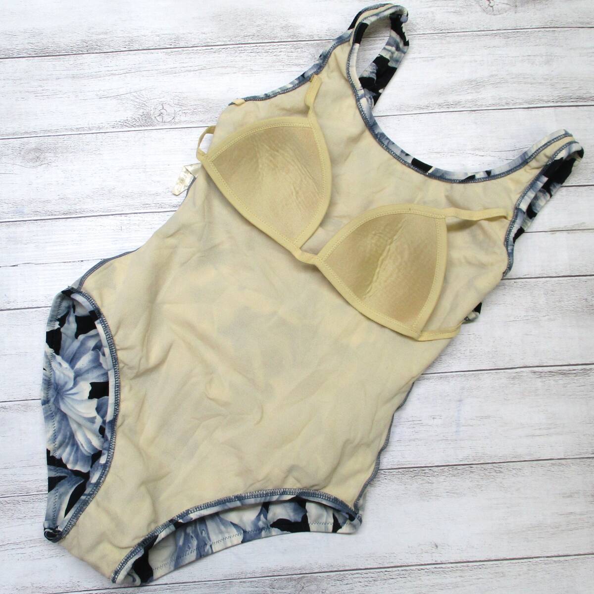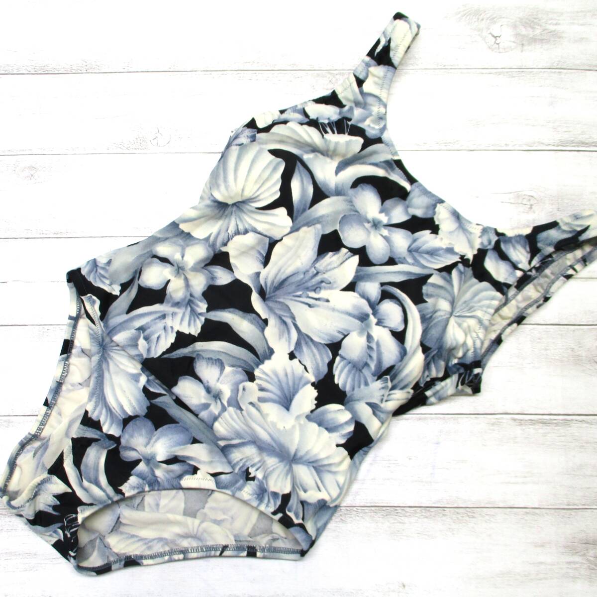 F0479★花柄 グレー おしゃれ 水着 ワンピース レディース ブラック ホワイト モノトーン 白黒 日本製 水泳 プール ビーチ 海