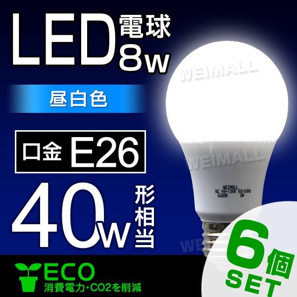 2個セット LED電球 E26 40W形 8W 昼白色 電球