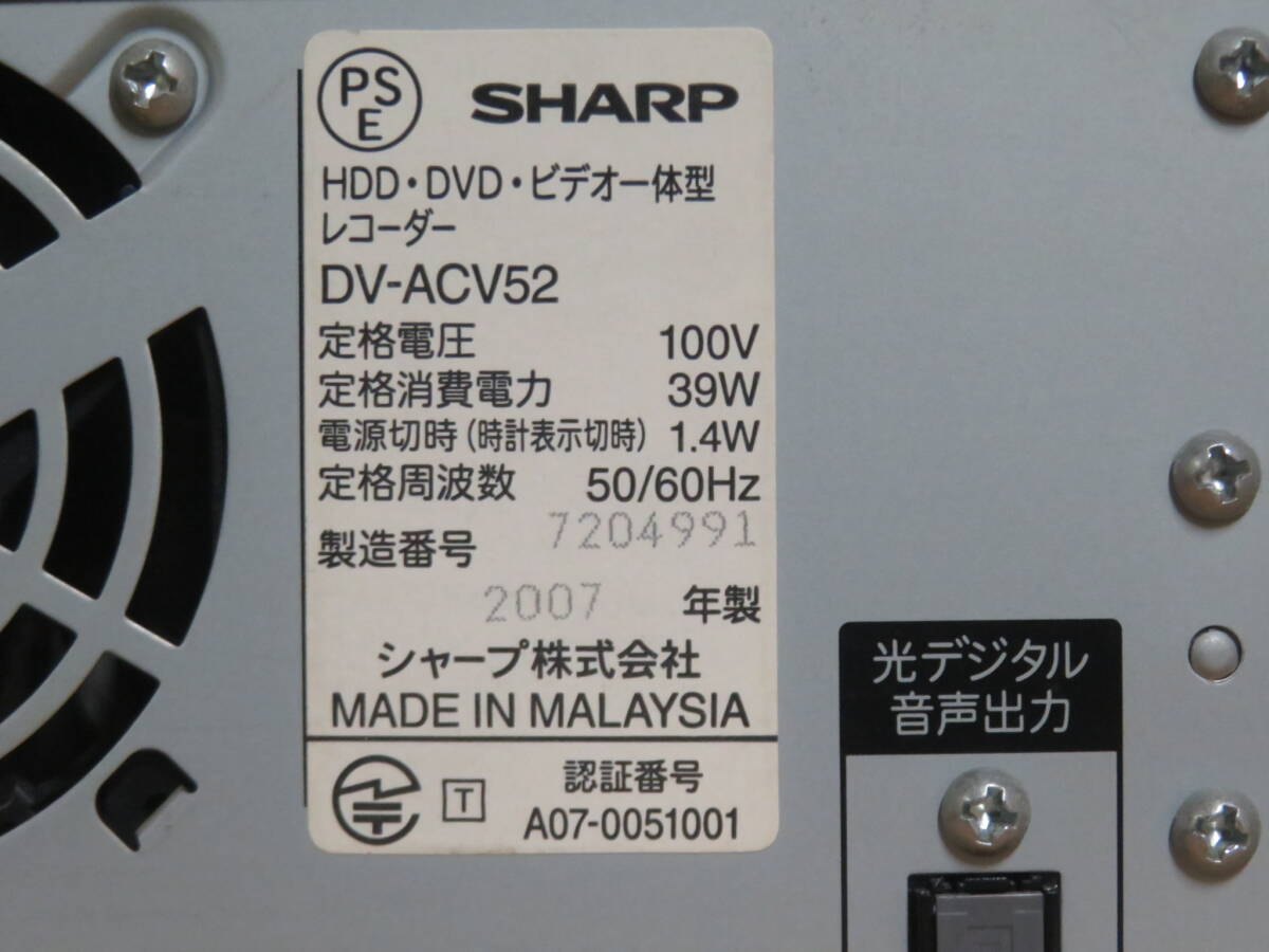 SHARP シャープ DV-ACV52 VHS/HDD/DVDレコーダー ビデオ一体型レコーダー ジャンク品/部品取り