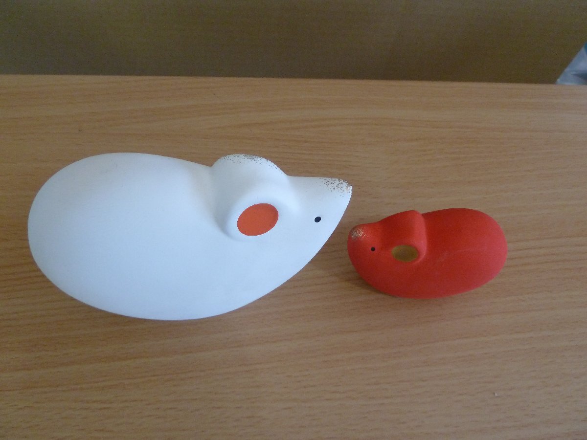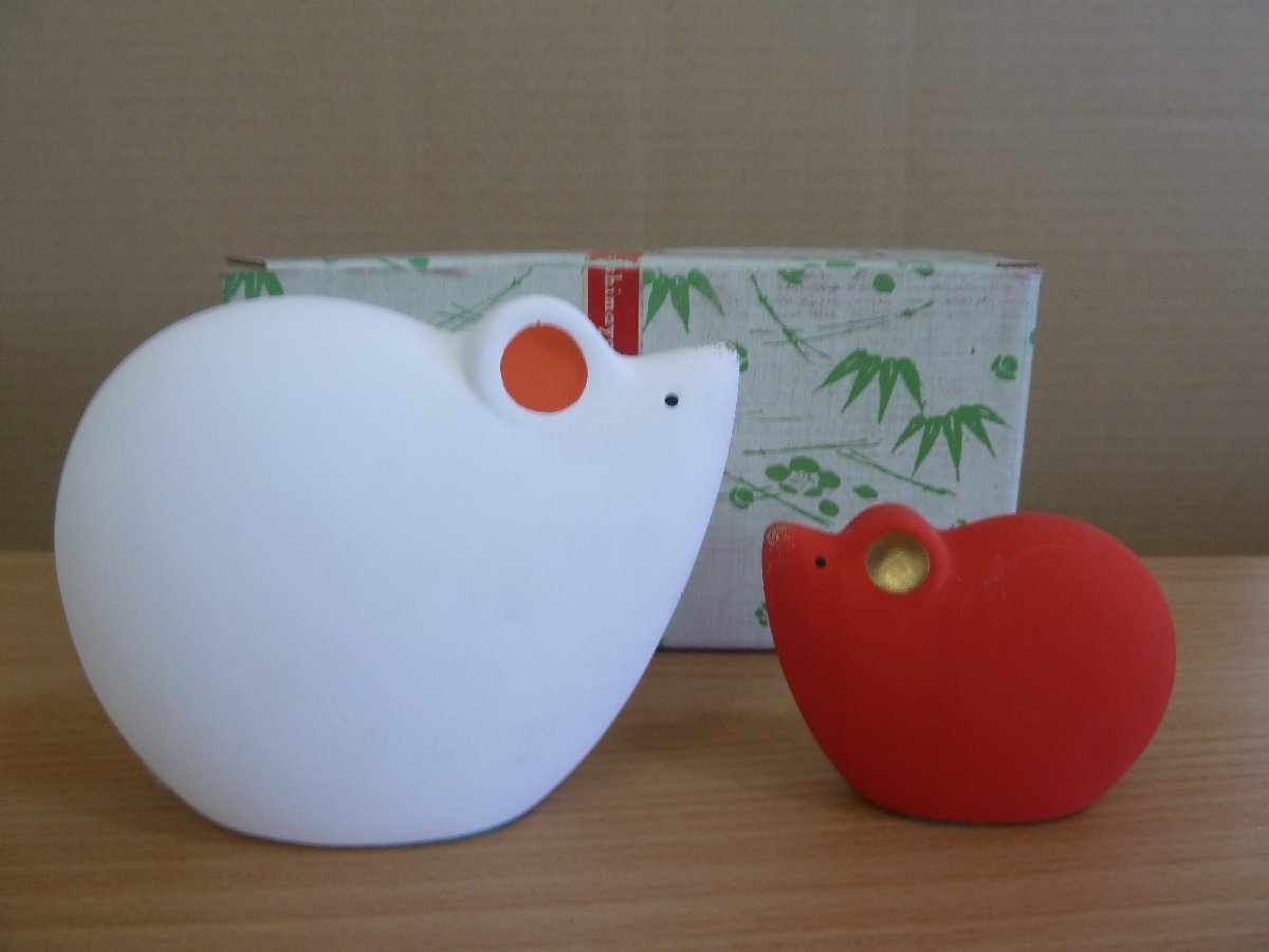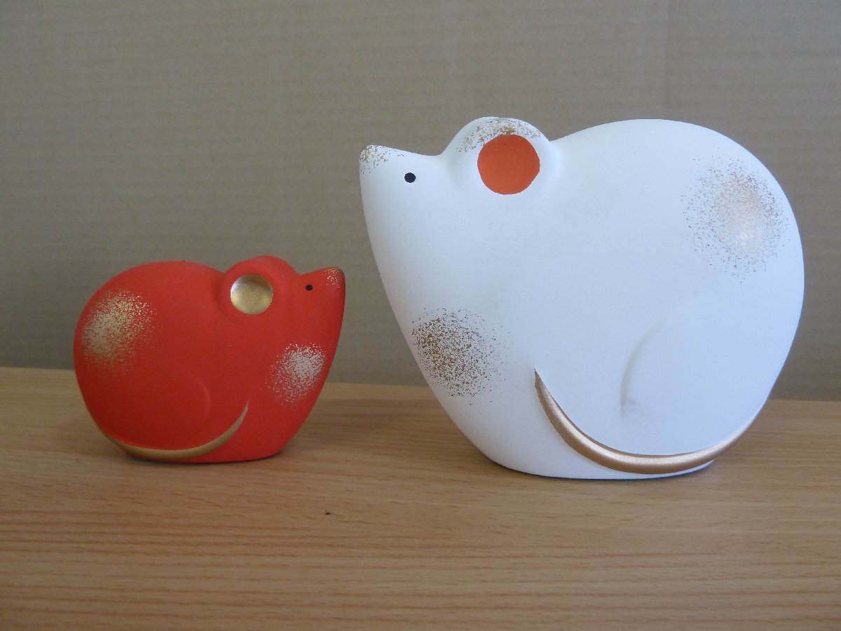 | 【1円スタート】招福の干支置物 薬師窯 ネズミ 紅白 大小 | |