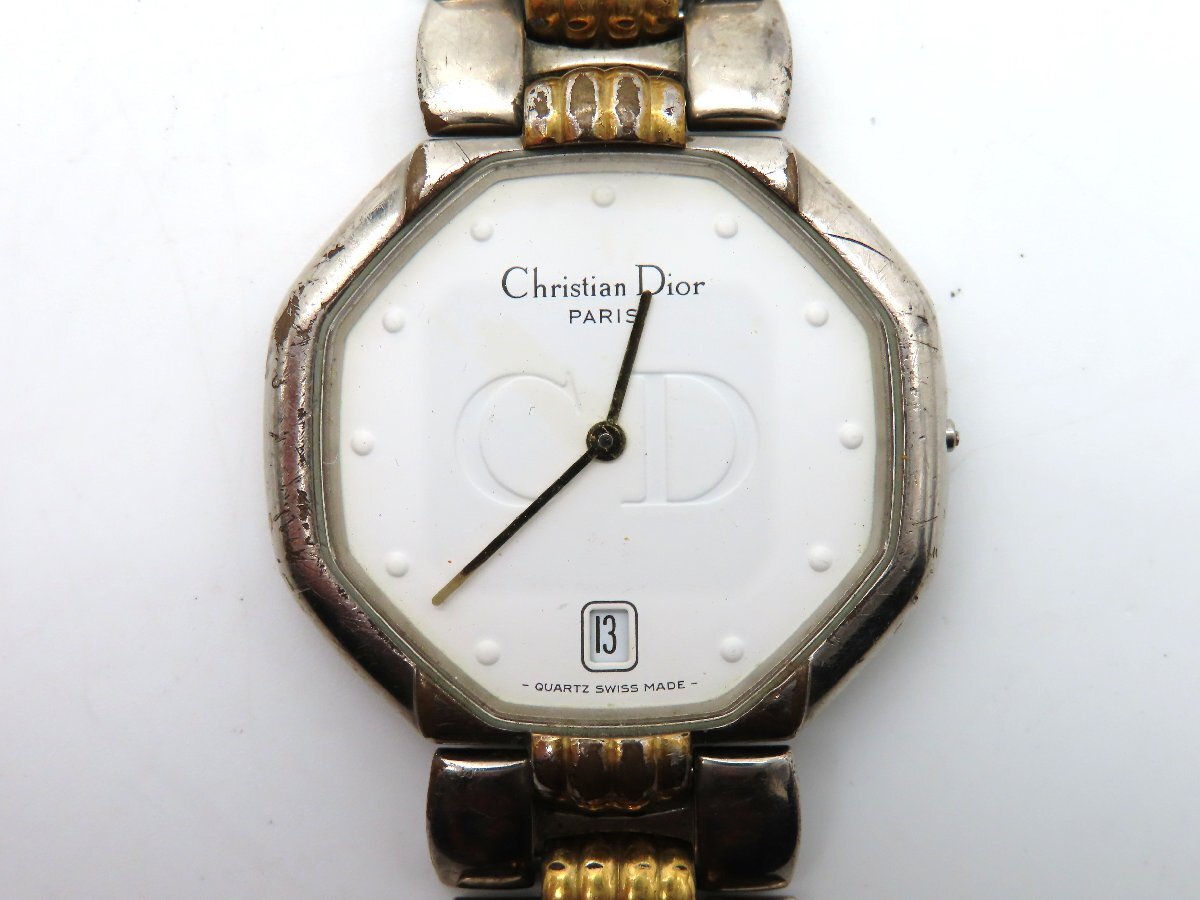 1円 クリスチャンディオール 45.204 SS ホワイト文字盤 ボーイズ 稼働 QZ 2973402