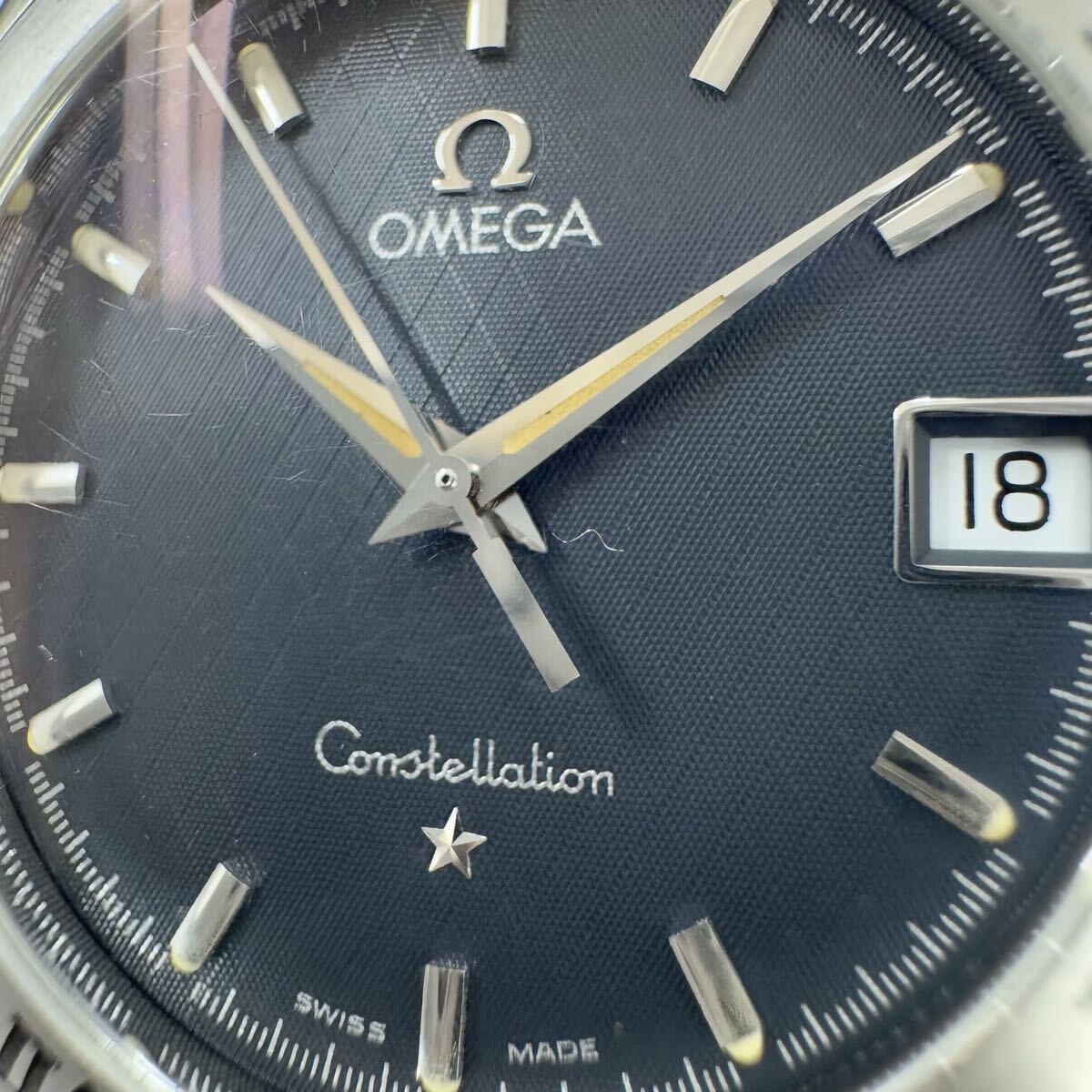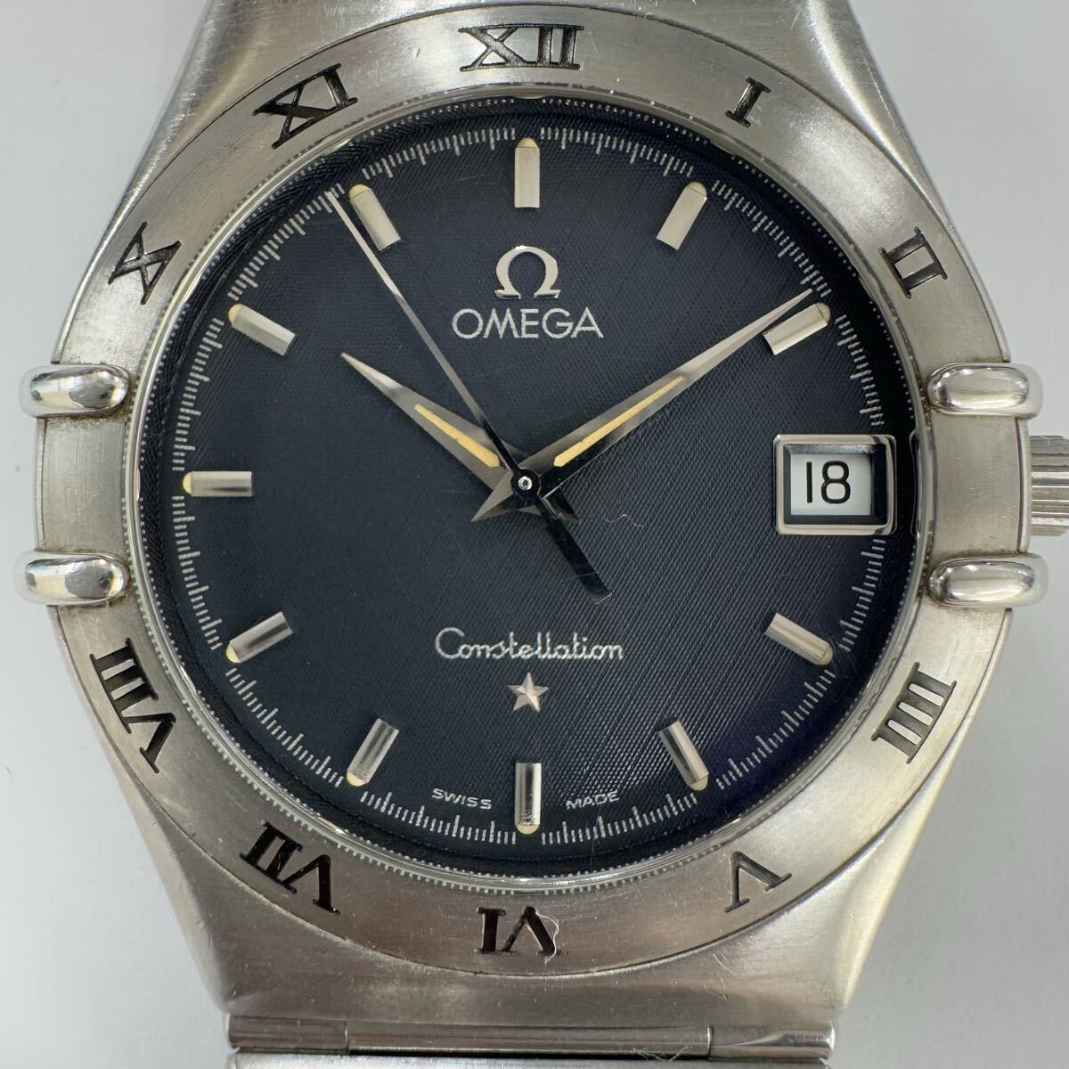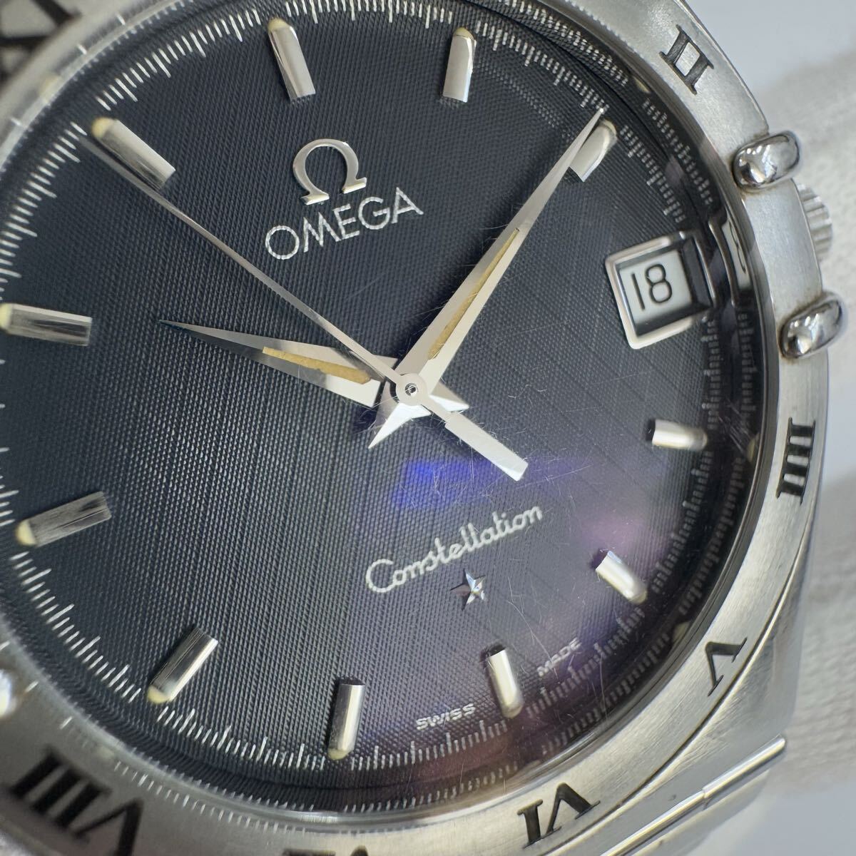 ★1円スタート★OMEGA オメガ コンステレーション デイト メンズ 腕時計 クォーツ 動作未確認 ネイビー文字盤 ベルト純正 箱あり OB1684