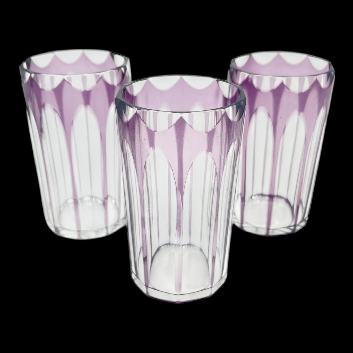 切子グラス 食器 おまとめ 紫切子 グラス コップ アンティーク レトロ 紫 3点 中古品 60サイズ 蘇さ(NKY126)
