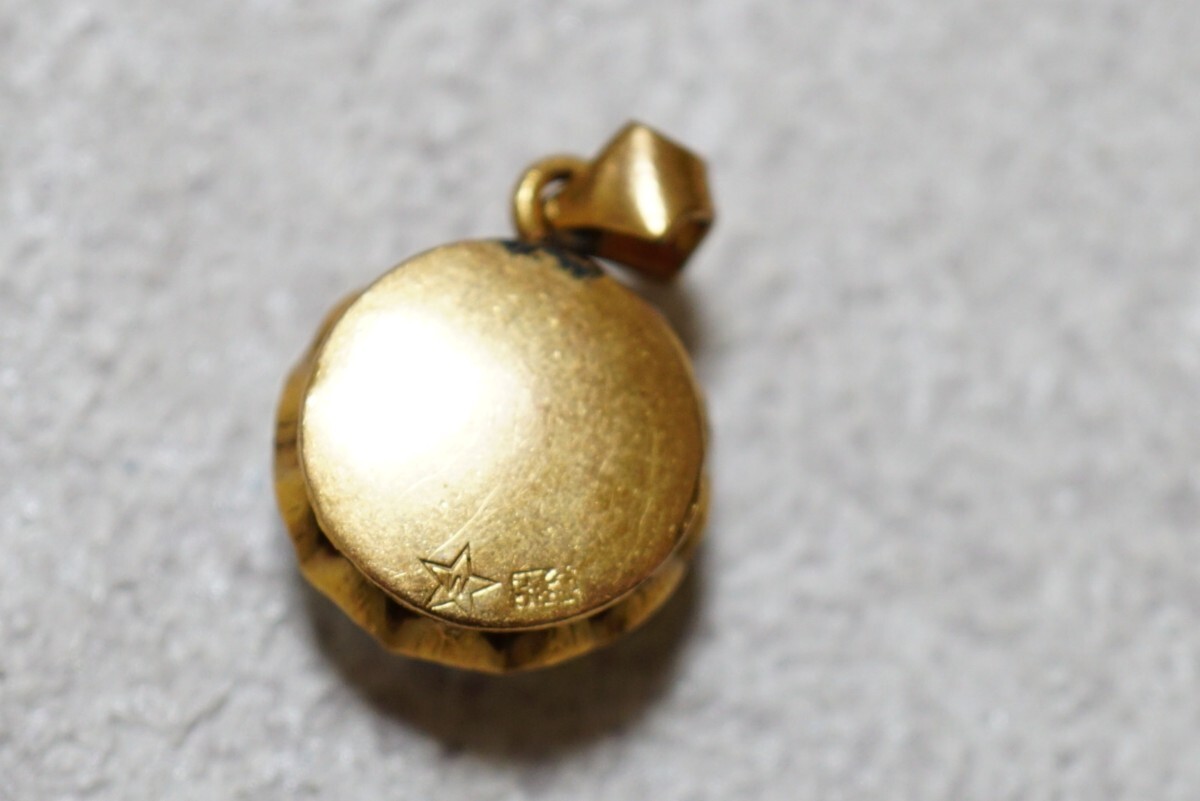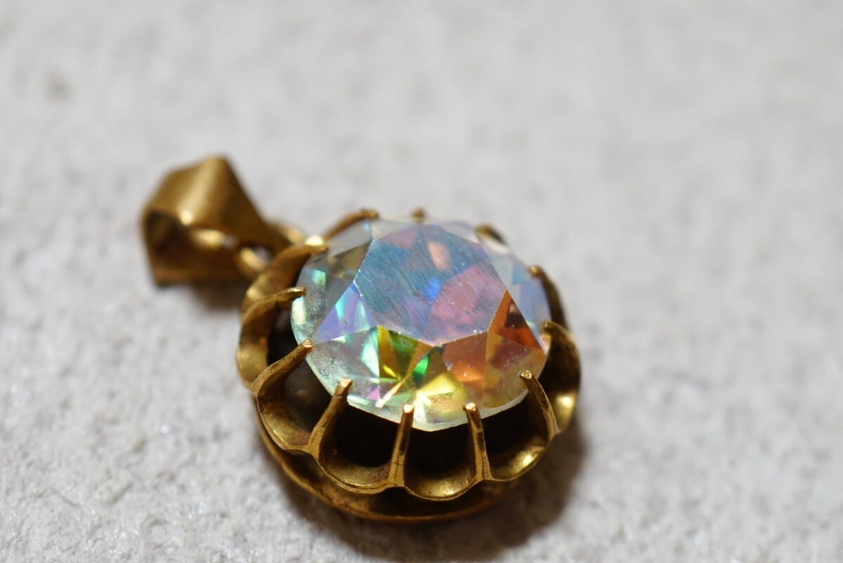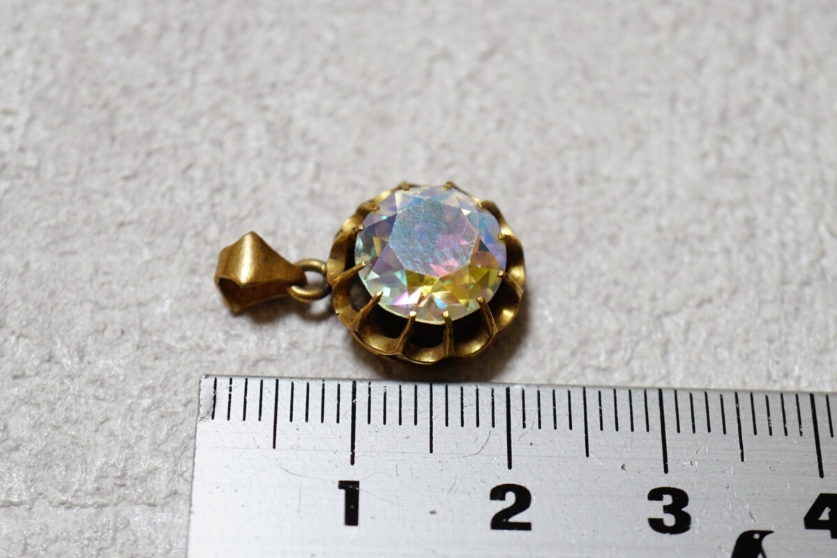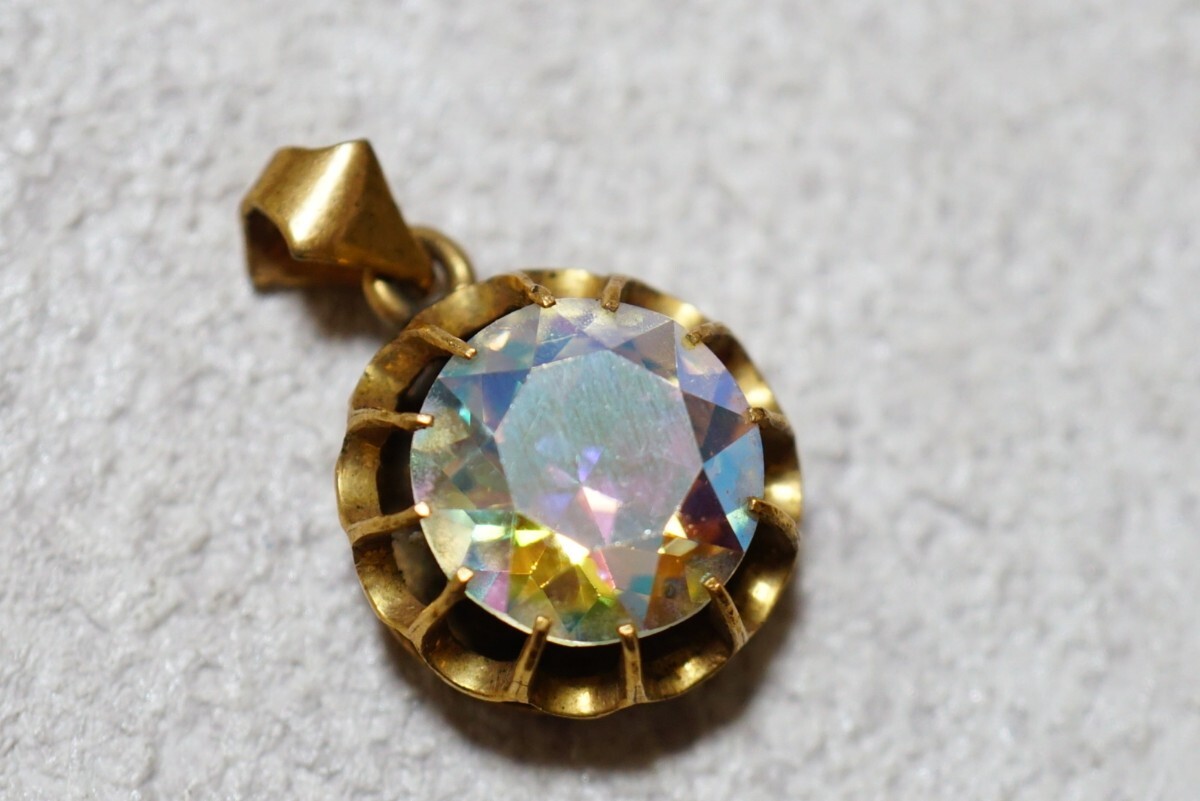 145 昭和レトロ 菊爪 ガラス ゴールドカラー ペンダント ヴィンテージ アクセサリー 張金刻印 メッキ アンティークネックレス 装飾品