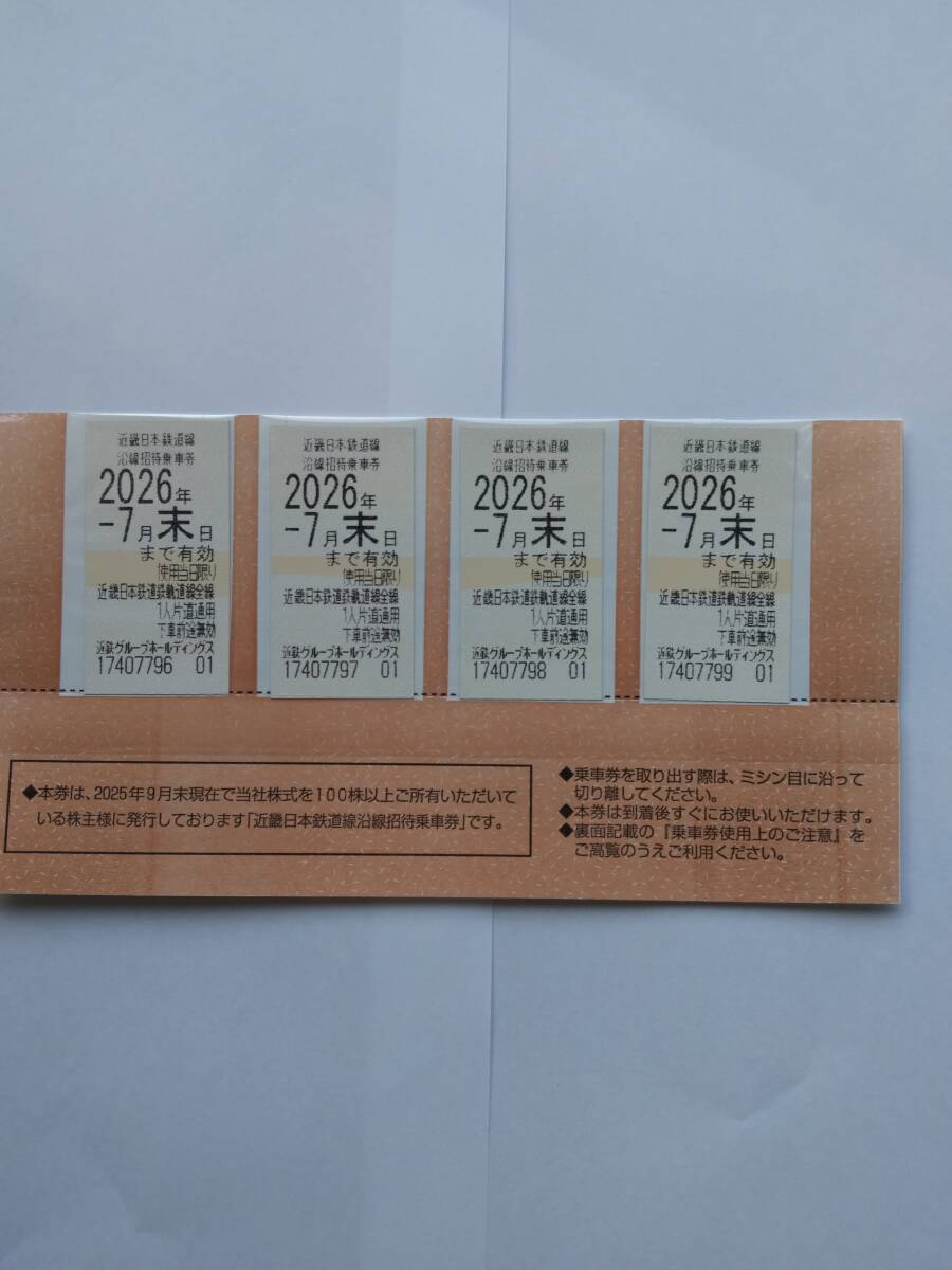 最新☆近鉄株主優待乗車券4枚セット+株主様ご優待券★送料無料