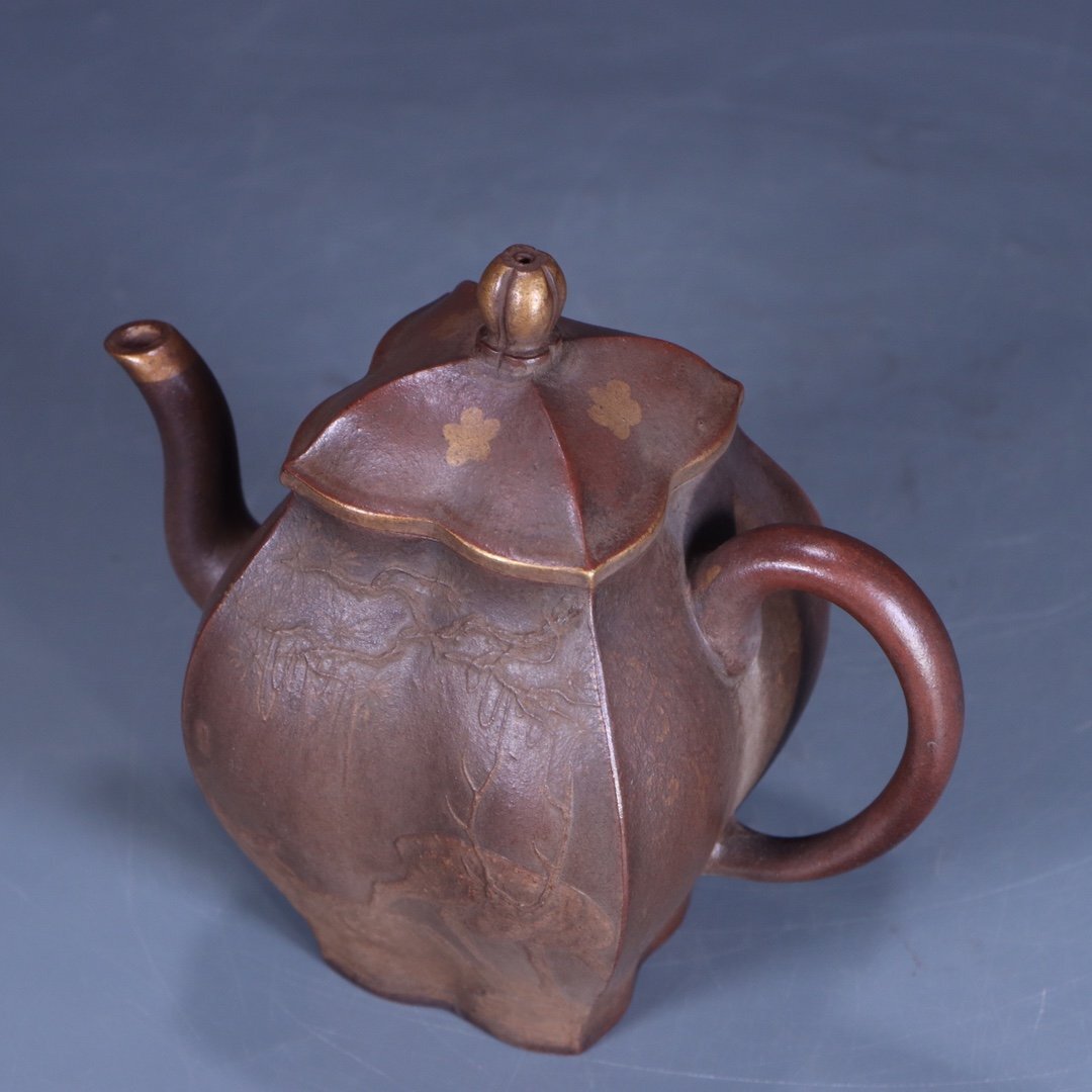 | ◇商品名◇ | ■大成美術■用卿製款 泥絵福鹿紋描金瓜稜紫砂急須(検)明時代 急須 紫砂茶壺 茶道具 唐物 中国美術 骨董 349 | ||