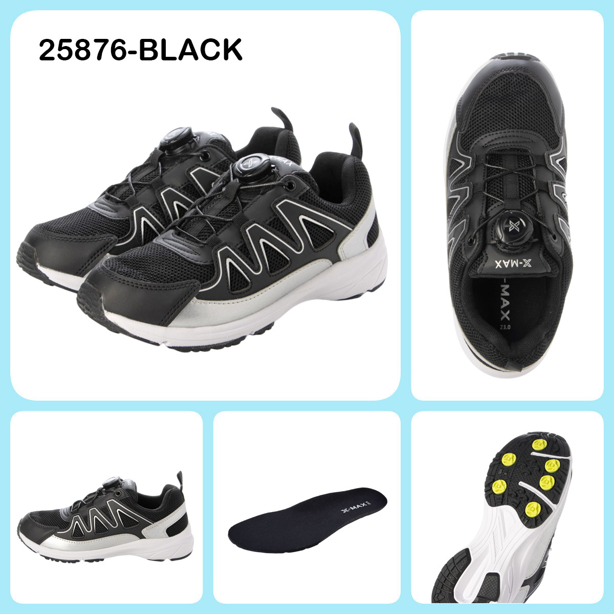 キッズ ジュニア ダイヤル式 スニーカー ワンタッチ ダイヤル 運動靴 通学靴 スクールシューズ ランニングシューズ 25876-blk-210