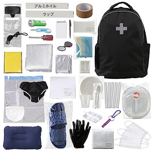 ●セット内容2:21.携帯用トイレ、22.ポリ袋、23.ラバー手袋、24.圧縮袋、25.布テープ、26.2WAYドライバー、27.カッターナイフ、28.お薬ケース、29.ポーチ、30.筆記用具セット、31.ルーペ、32.防水スマホ袋、33.使い捨て下着
