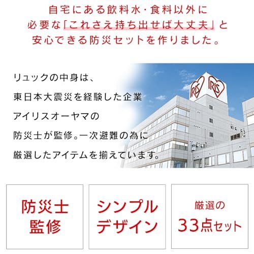 【防災士監修】 アイリスオーヤマ(IRIS OHYAMA) エアー枕付きで避難所生活も快適にこれ1つで安心防災リュック 1人 ra
