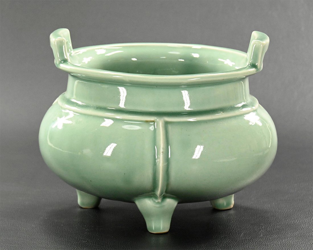 【永】d055【兵庫県の図書館や博物館の館長を歴任された歴史研究家遺族委託品】中国清朝 南京青磁 三足大香炉瓶掛 伝来品