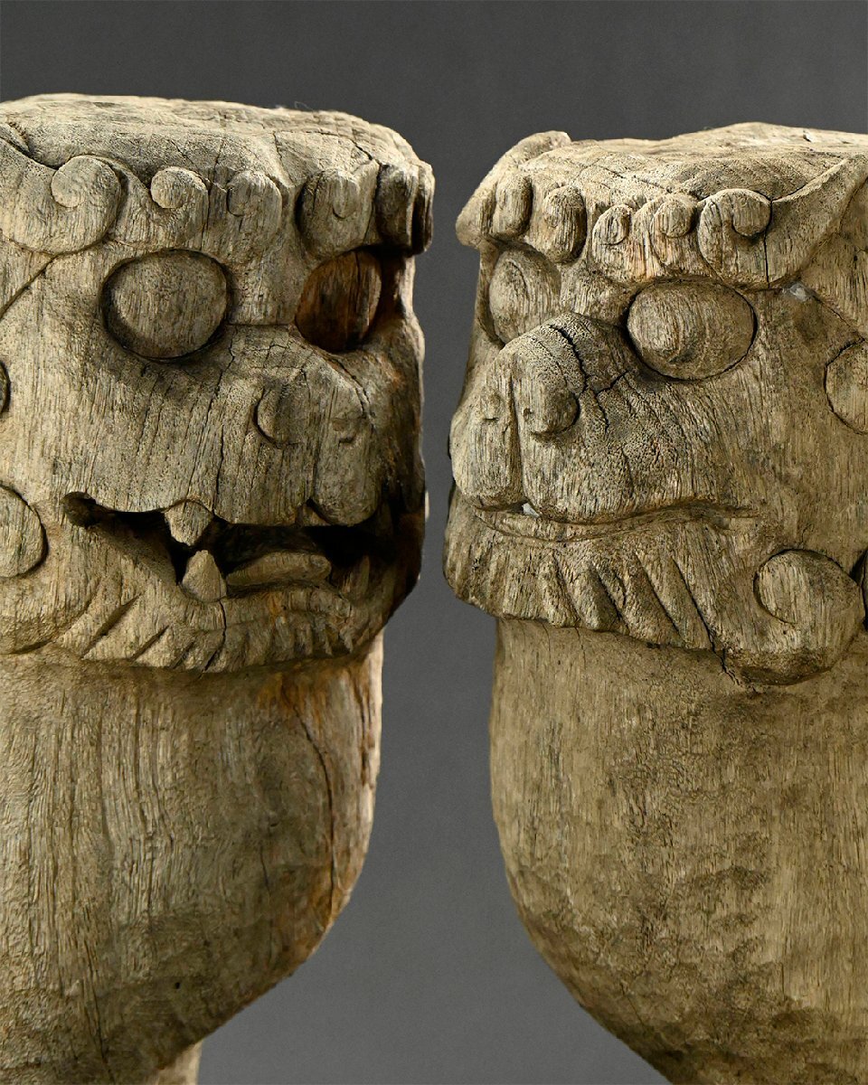 【永】d036【兵庫県の図書館や博物館の館長を歴任された歴史研究家遺族委託品】日本美術 室町~江戸時代 木造彩色狛犬一対  仏教美術