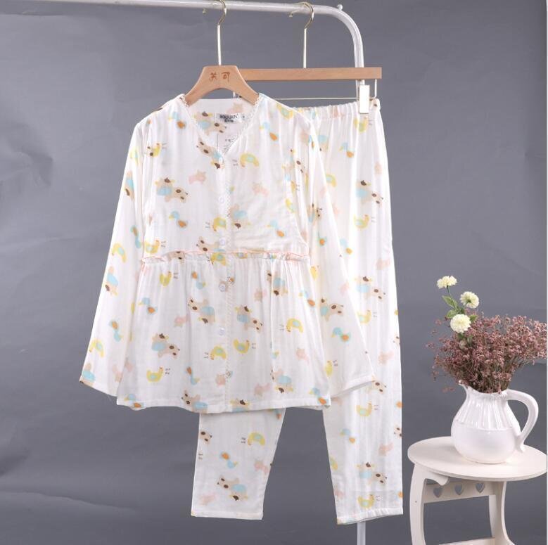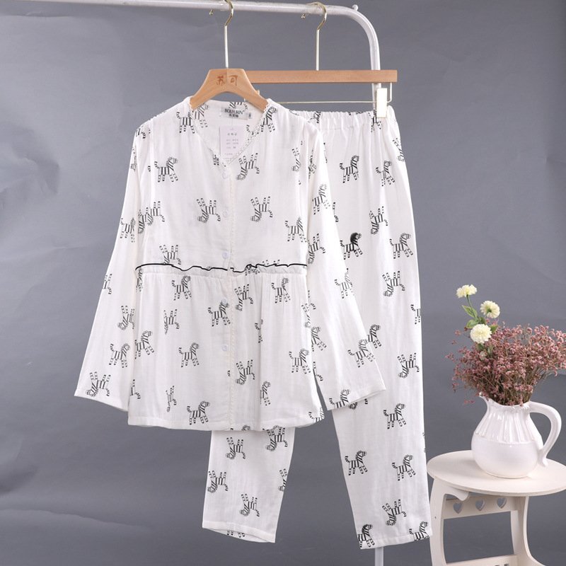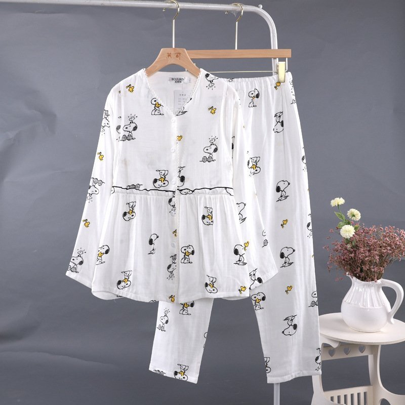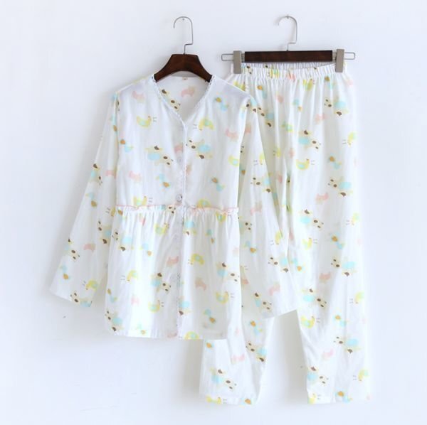 レディース コットン 純綿 Wガーゼ 柔らかい 通気 パジャマ ☆M~Lサイズ選択/1点