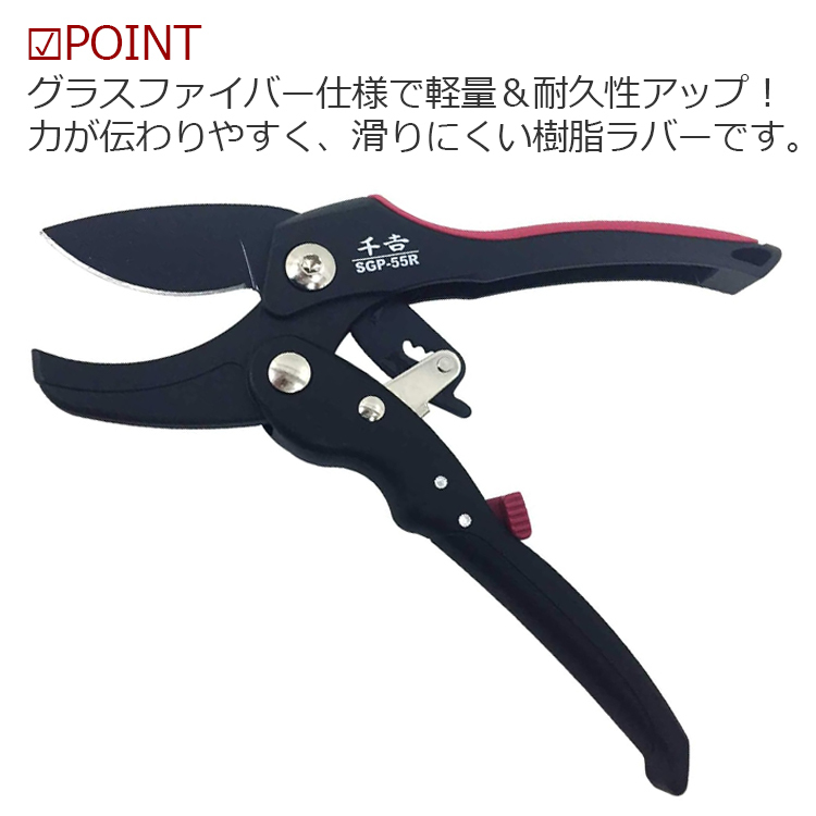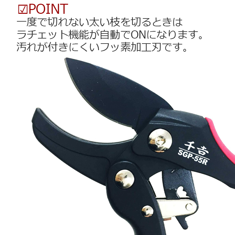 千吉 剪定ばさみ SGP-55R オートラチェット機能付 剪定バサミ 剪定鋏 枝きりはさみ 小枝きり