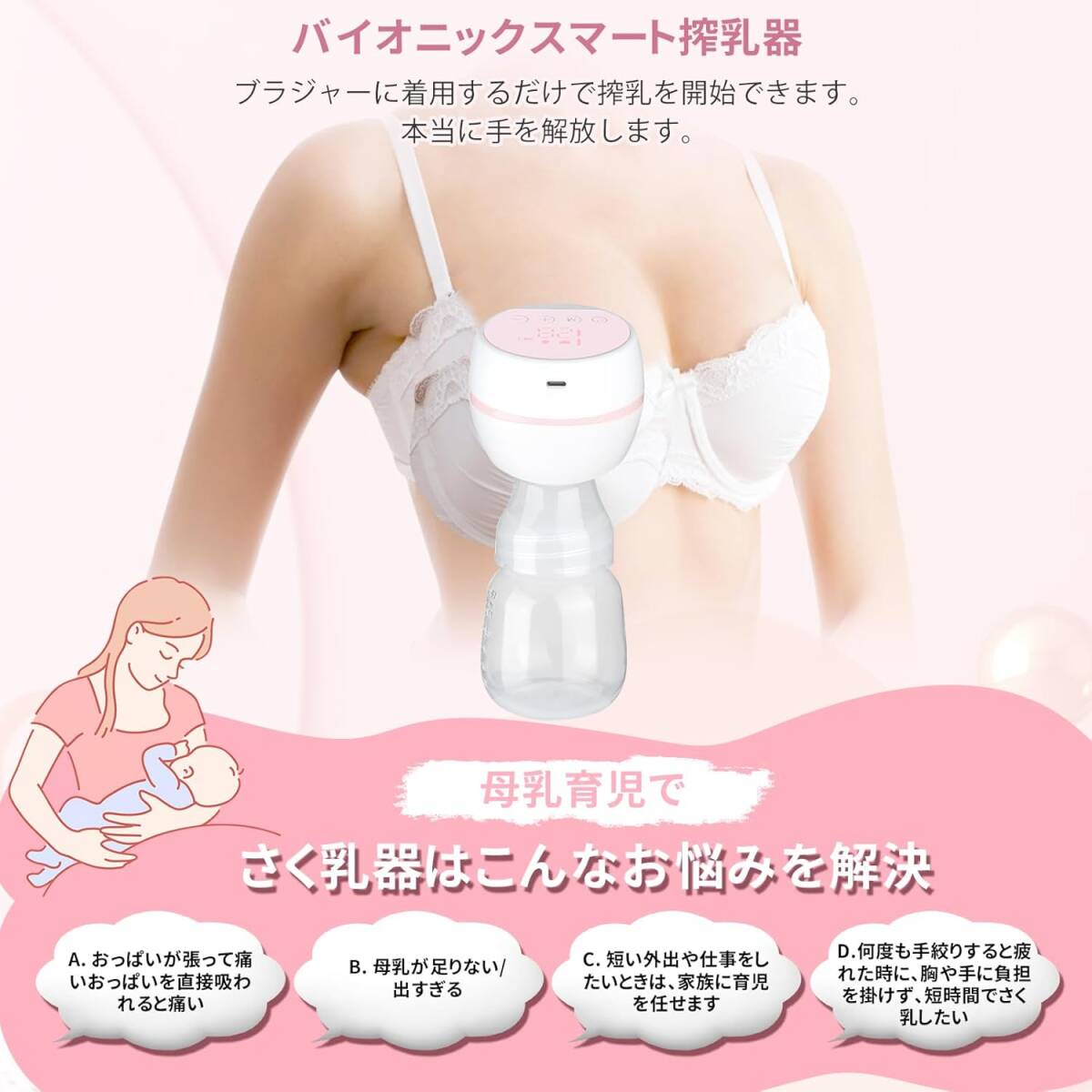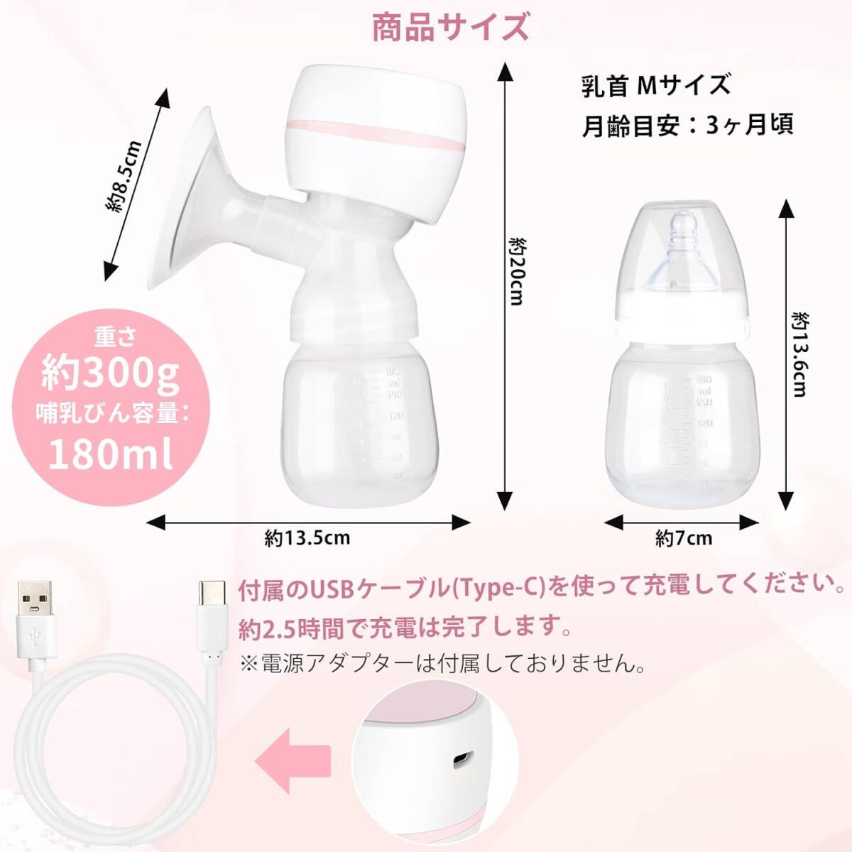 【USB充電&低騒音設計】さく乳器の充電にはUSBケーブルを使用し、パワーバンクまたは電源アダプターを使用してどこでも充電できます。コンパクトの設計なので小さくて軽く、出かける時にもさくにゅうきをカバンに入れて簡単に携えています。さ先進的な乳吸引技術の設計で、音は50 db未満で、赤ちゃんは乳を吸う時と寝る時に邪魔されない。