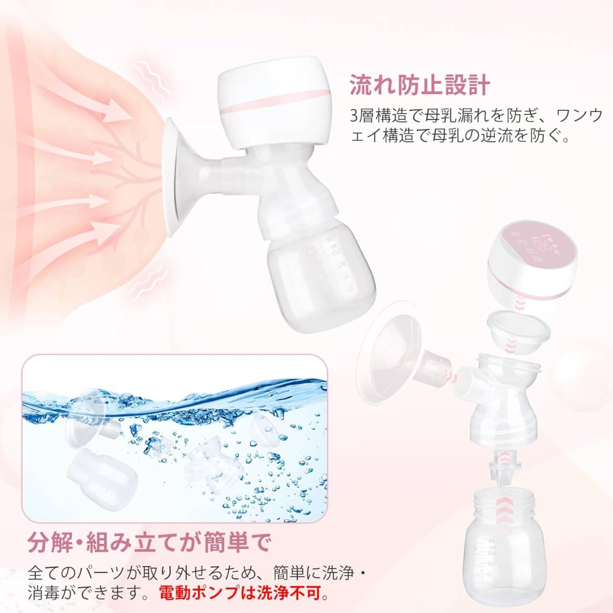 【シンプル設計でお手入れ簡単】BPAフリーの食品グレードのシリコーンとPP素材で作られており、耐熱性と落下防止性に優れ、熱湯に入れて消毒することもできます。 すべての部品は取り外し可能で、洗浄、消毒、乾燥が簡単です。 注: 電気部品は洗浄できません。(ご使用のメーカーの使用説明書に従ってください。)M72